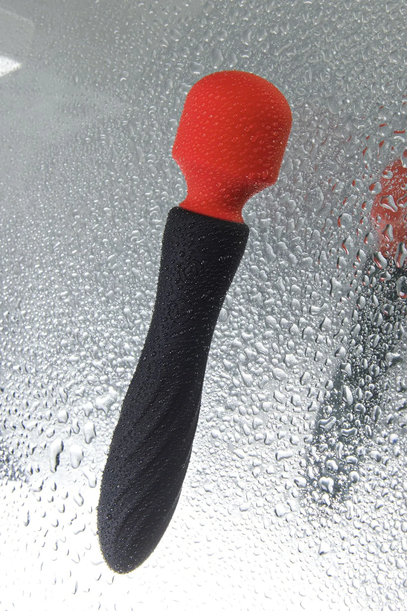 Двусторонний массажер-вибратор из серии Black&Red – ваш “мастхэв” для фантастического удовольствия. Два мощных мотора – в головке и в стволе, могут работать в 10 режимах автономно и одновременно, создавая множество вибрирующих комбинации для новых ощущений. С одной стороны классический массажер-ванд красного цвета. Его головка диаметром 4,3 см легко скользит по внешним эрогенным зонам, снимая напряжение и возбуждая нервные окончания. Используйте для самомассажа, прелюдии, стимуляции клитора, половых губ и других чувствительных участков тела. С другой стороны брутальный вибратор черного цвета для вагинального проникновения. Спиральный рельеф погружной части не только украшает ствол, но и дарит дополнительные пикантные ощущения при проникновении. Диаметр ребристой части ствола – 3,2 см, длина рабочей части – 10 см. Легкий и удобный вибромассажер сделан из гладкого и нежного силикона с тактильным silk-покрытием. Для лучшего скольжения добавьте каплю лубриканта на водной основе. Девайс с защитой от брызг IPX6 способен дарить новые впечатления при использовании в душе независимо от вариаций использования. Заряжается с помощью USB-кабеля. Включается и управляется одной кнопкой включения. Последовательность нажатий: 1 - включение, 2 - ванд, 3 - вибратор, 4 - ванд и вибратор. Вторая кнопка переключает режимы вибрации.