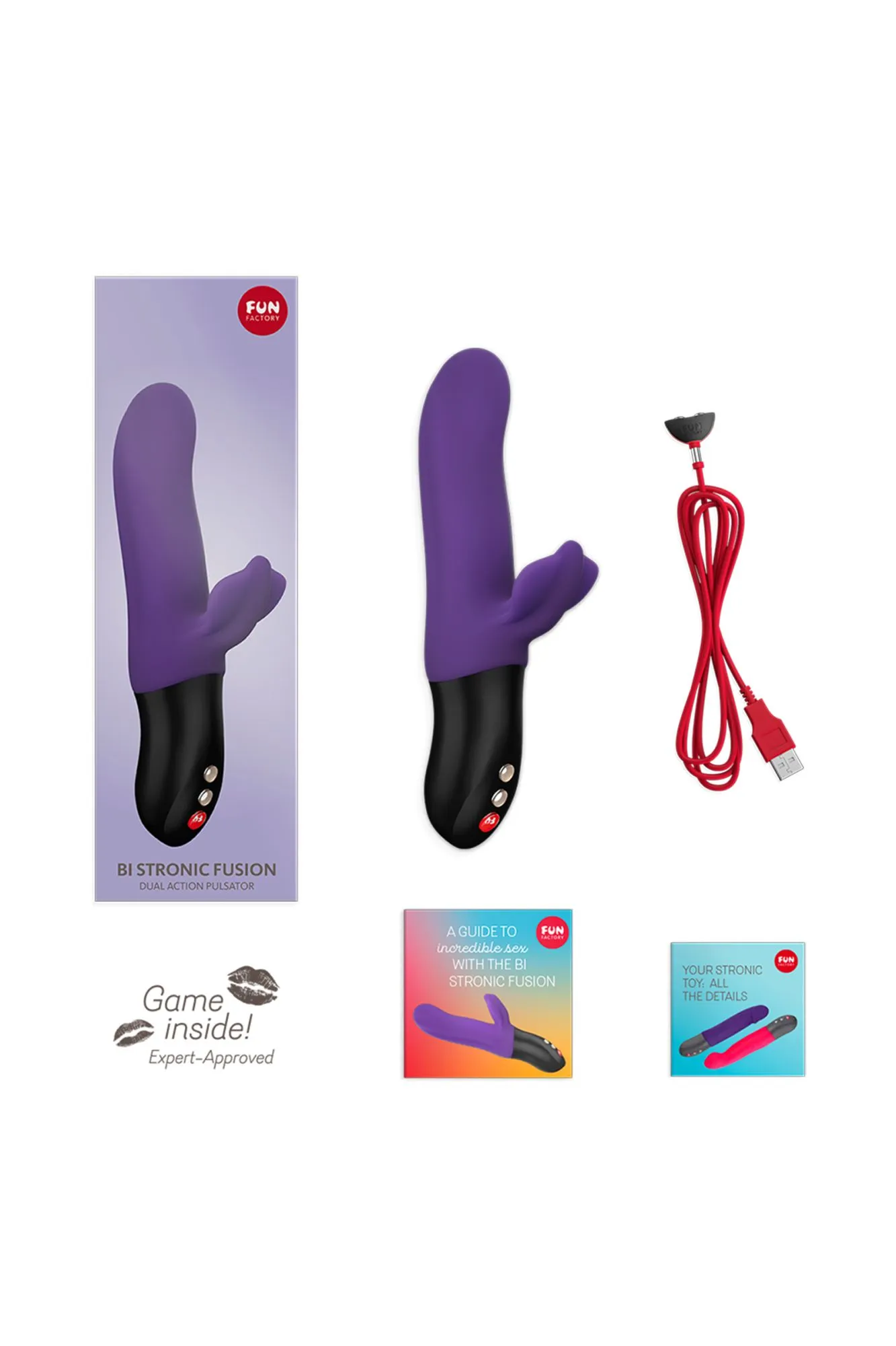 Пульсатор Fun Factory Bi Stronic Fusion — идеальный любовник: • Его многофункциональность поражает: пульсатор совмещает в себе мощный клиторальный вибратор, массажёр точки G или простаты, а также стимулятор влагалища, половых губ или ануса. • Его инновационный принцип работы позволяет насладиться и вибрацией, и пульсацией, которые могут работать вместе или независимо друг от друга. • Его интуитивно понятная панель управления молниеносно отзывается на любое желание, в том числе на мгновенную остановку. • Его расширенный функционал — светящийся индикатор заряда аккумулятора и блокировка замка — помогает держать удовольствие под контролем. • Его водонепроницаемая поверхность никогда не откажет в совместном принятии расслабляющей ванны. • Его зарядка от USB-провода быстро возвращает разрядившуюся игрушку в строй. С пульсатором Fun Factory Bi Stronic Fusion жаркие оргазмы станут постоянными спутниками интимных сессий!