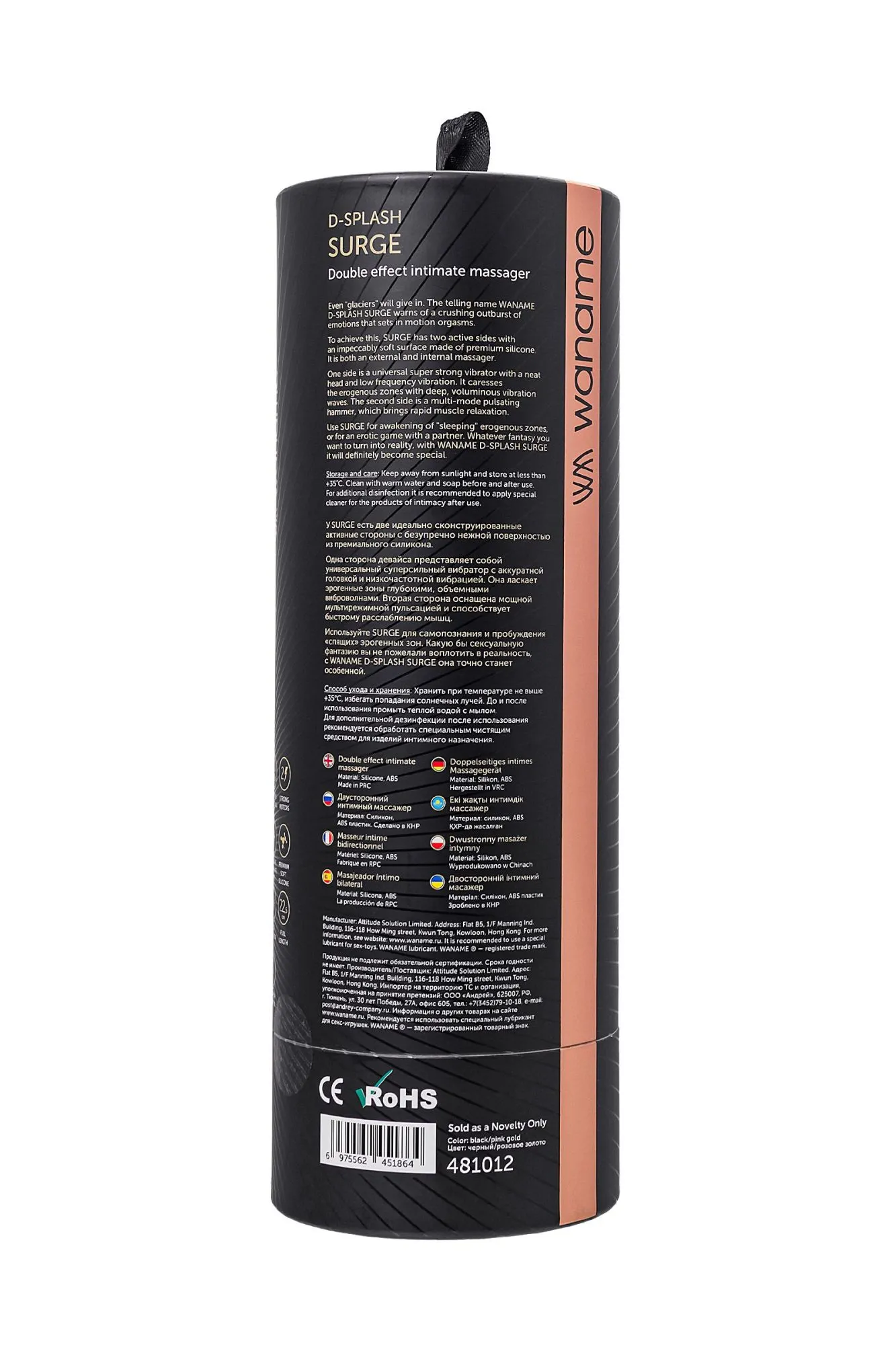 —Двусторонний интимный массажер WANAME D-SPLASH Surge, силикон, черный, 22,5 см