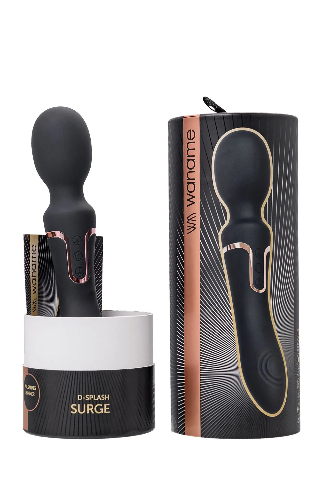 Двусторонний интимный массажер WANAME D-SPLASH Surge, силикон, черный, 22,5 см