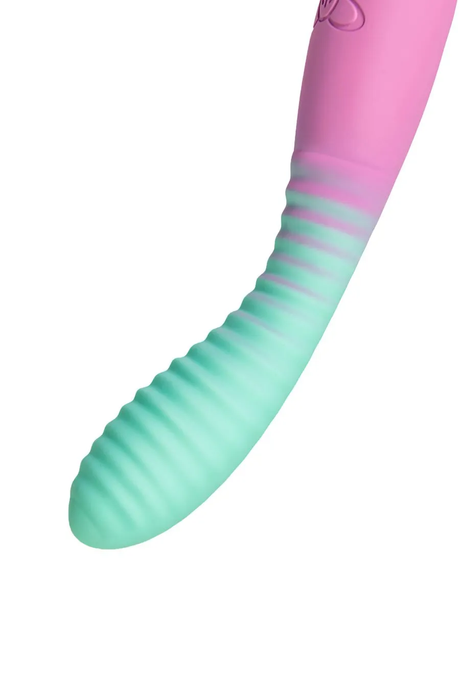 Позвольте представить Azalia от Flovetta — вибратор с плавным градиентом от нежного мятного до теплого розового оттенка, который привнесет в вашу жизнь моменты настоящего наслаждения. Этот милый вибратор классической слегка изогнутой формы сочетает элегантный дизайн и функциональность, даря каждой девушке не только эстетическое удовольствие, но и непревзойденные ощущения.