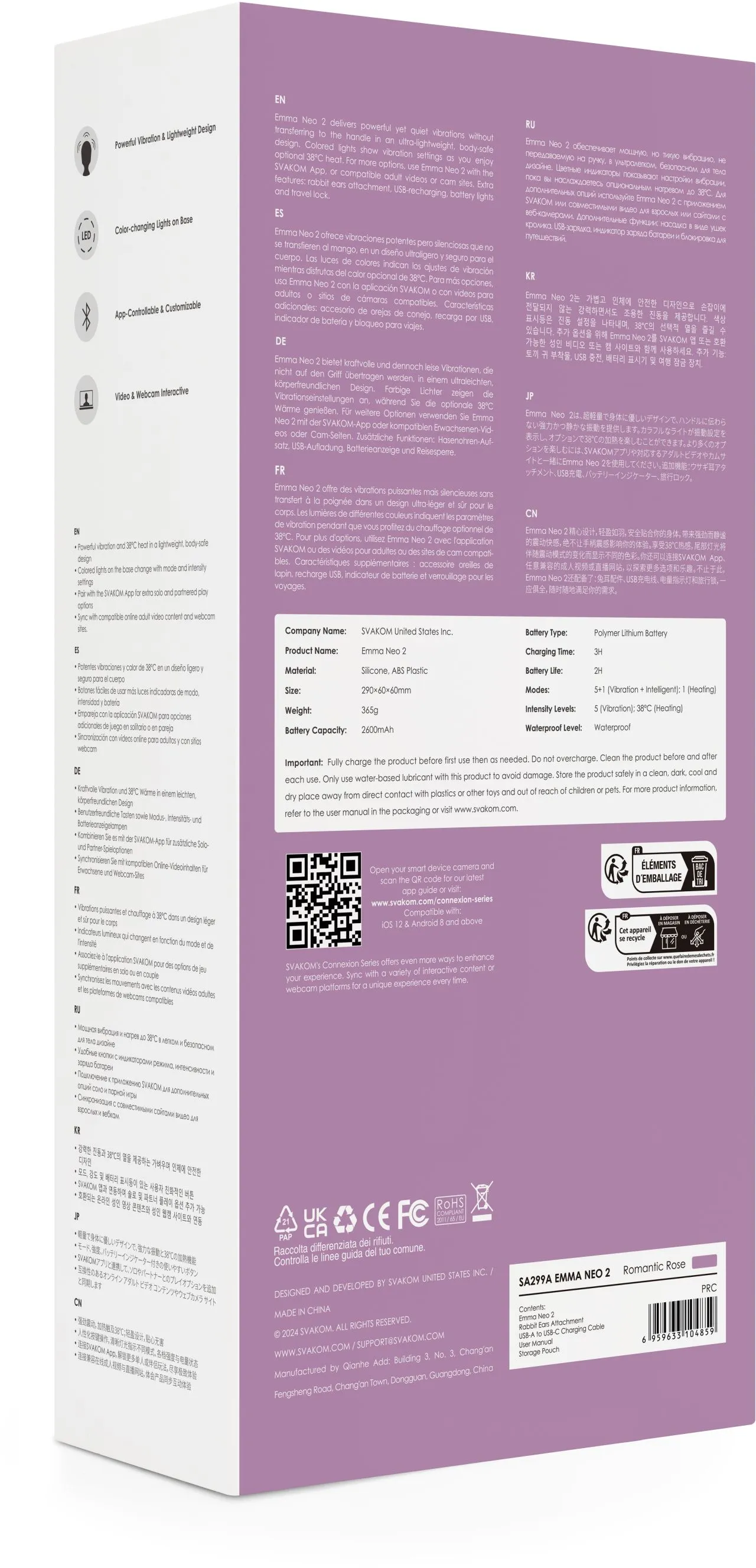 Emma Neo 2 создана для максимального комфорта и удовольствия. Лёгкий вес, бесшумный мотор и высококачественный гипоаллергенный силикон делают её безопасной и удобной в использовании. Идеальна как для самостоятельного использования, так и для игр с партнёром.