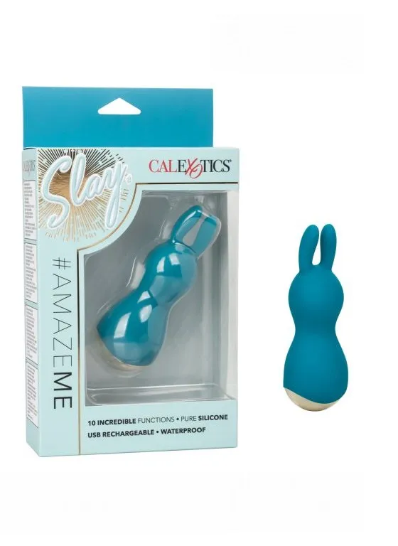 Slay #AmazeMe - перезаряжаемый мульти скоростной миниатюрный вибромассажер. Благодаря форме в виде кролика идеально подходит для целенаправленной стимуляции самых чувствительных мест. Бесшумный двигатель вибратора обеспечивает 10 различных функций вибрации, пульсации и эскалации.