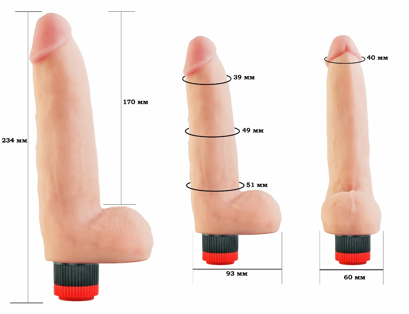 Вибромассажёр телесного цвета. Имеет форму члена с ярко-выраженной головкой. Необычайно приятный, рельефный, выполненный из материала «Неоскин» , передающий эффект мягкой реалистичной текстуры кожи, не имеет швов. Виброэлемент расположен по всей длине изделия. Степень вибрации регулируется при помощи кнопки, расположенной в основании. Работает от 2АА батареек (нет в комплекте). Общая длина – 23 см, рабочая длина-16 см, максимальный диаметр - 4,5 см. Упаковка: картонная коробка с принтом.