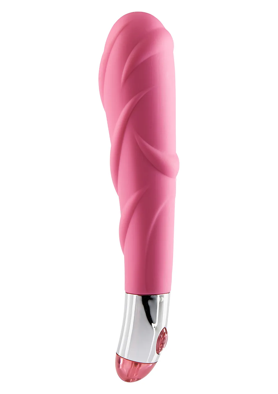 Вибростимулятор нежно розового цвета с рельефной поверхностью,расширяется к вверху. Несколько  режимов работы вибрации и пульсаци,управляются с помощью кнопки ,расположенной у основания вибратора.Материал силикон- необычайно приятный на ощупь,без запаха.Работает от 2-х батареек типа ААА( не идут в комплекте) .Общая длина 18,5 см, рабочая длина 14,5 см,диаметр максимальный 3,5см.