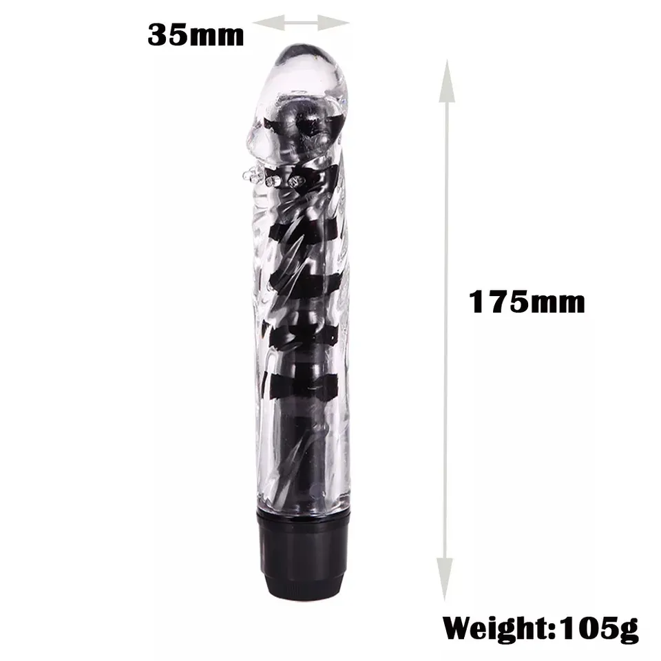 Черный вибратор, имеет классическую форму. Необычайно приятный, прозрачный материал, вибратор оснащен дополнительными пупырышками под головкой для особенных ощущений. Степень вибрации регулируется при помощи кнопки, расположенной в основании. Работает от 2-х батареек АА (нет в комплекте). Общая длина – 17,5 см, максимальный диаметр -3,5 см.