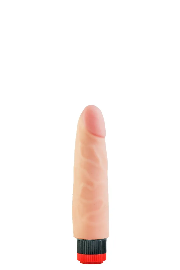 Вибратор-реалистик телесного цвета. Имеет форму члена с ярко-выраженной головкой, рельефный, выполненный из материала неоскин, не имеет швов. Скорость вибрации регулируется кнопкой у основания изделия. Характеристика: работает от 2АА батареек (нет в комплекте), общая длина – 20 см, рабочая длина- 17 см, максимальный диаметр- 4,5 см, без запаха, упакован в пленку.