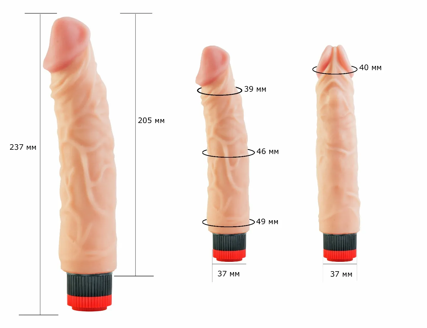 Вибромассажёр телесного цвета. Имеет форму члена с ярко-выраженной головкой. Необычайно приятный, рельефный, выполненный из «Киберкожи» , передающий эффект мягкой реалистичной текстуры кожи, не имеет швов. Виброэлемент расположен по всей длине изделия. Степень вибрации регулируется при помощи кнопки, расположенной в основании. Общая длина – 23.5 см, рабочая длина-21см, максимальный диаметр -5 см. упаковка в виде прозрачной пленки.