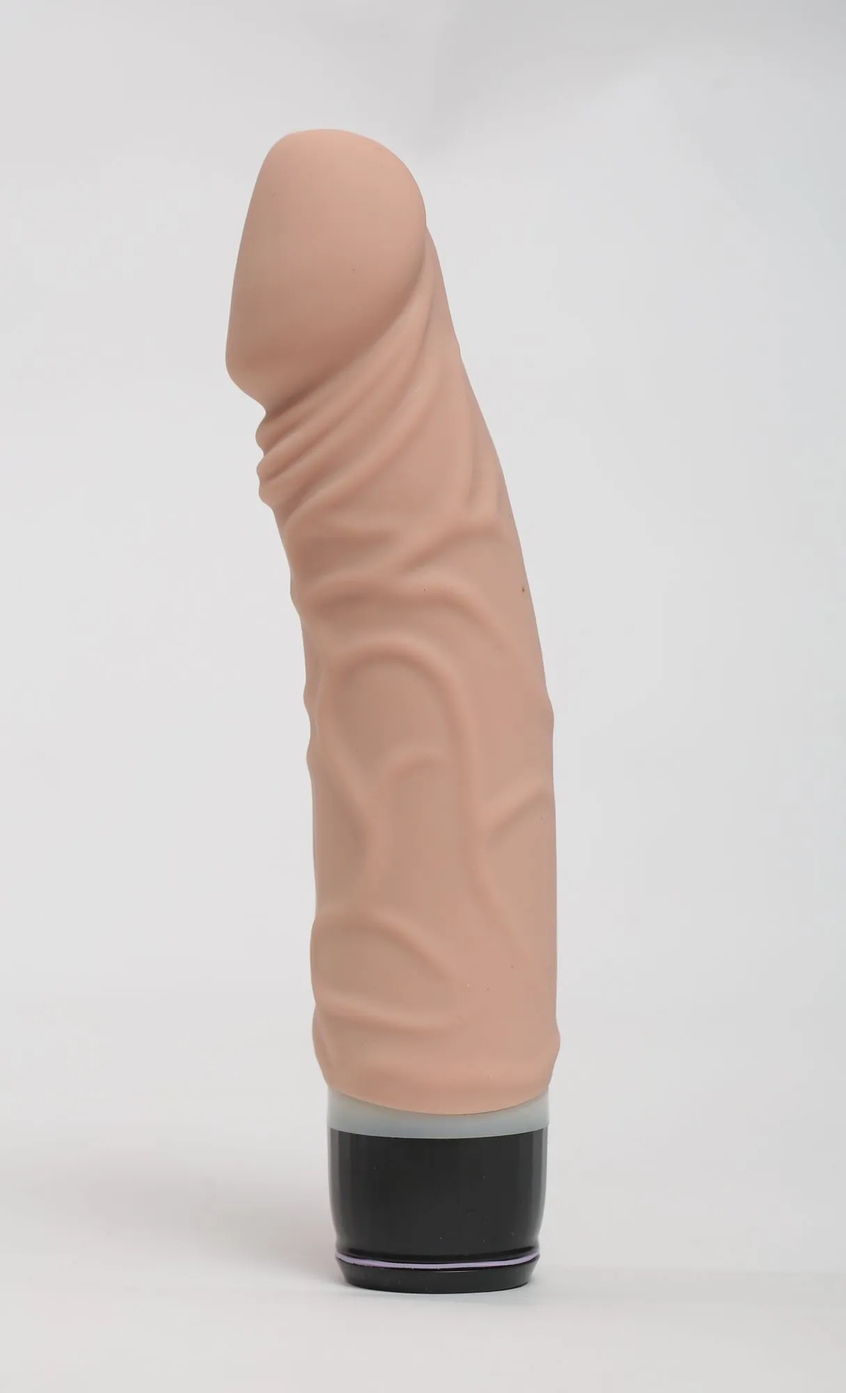 Вибромассажёр телесного цвета. Имеет форму члена. Необычайно приятный, рельефный, выполненный из высококачественного силикона , передающий эффект мягкой реалистичной текстуры кожи, не имеет швов. Виброэлемент расположен по всей длине изделия. Вариации вибрации регулируются при помощи кнопки, расположенной в основании. Работает от 2-х батареек типа АА (в комплект не входят). Общая длина – 19,5см, основной диаметр 3,5 см, максимальный диаметр в изгибе головки -4,2 см. Упаковка в виде картонной коробки.