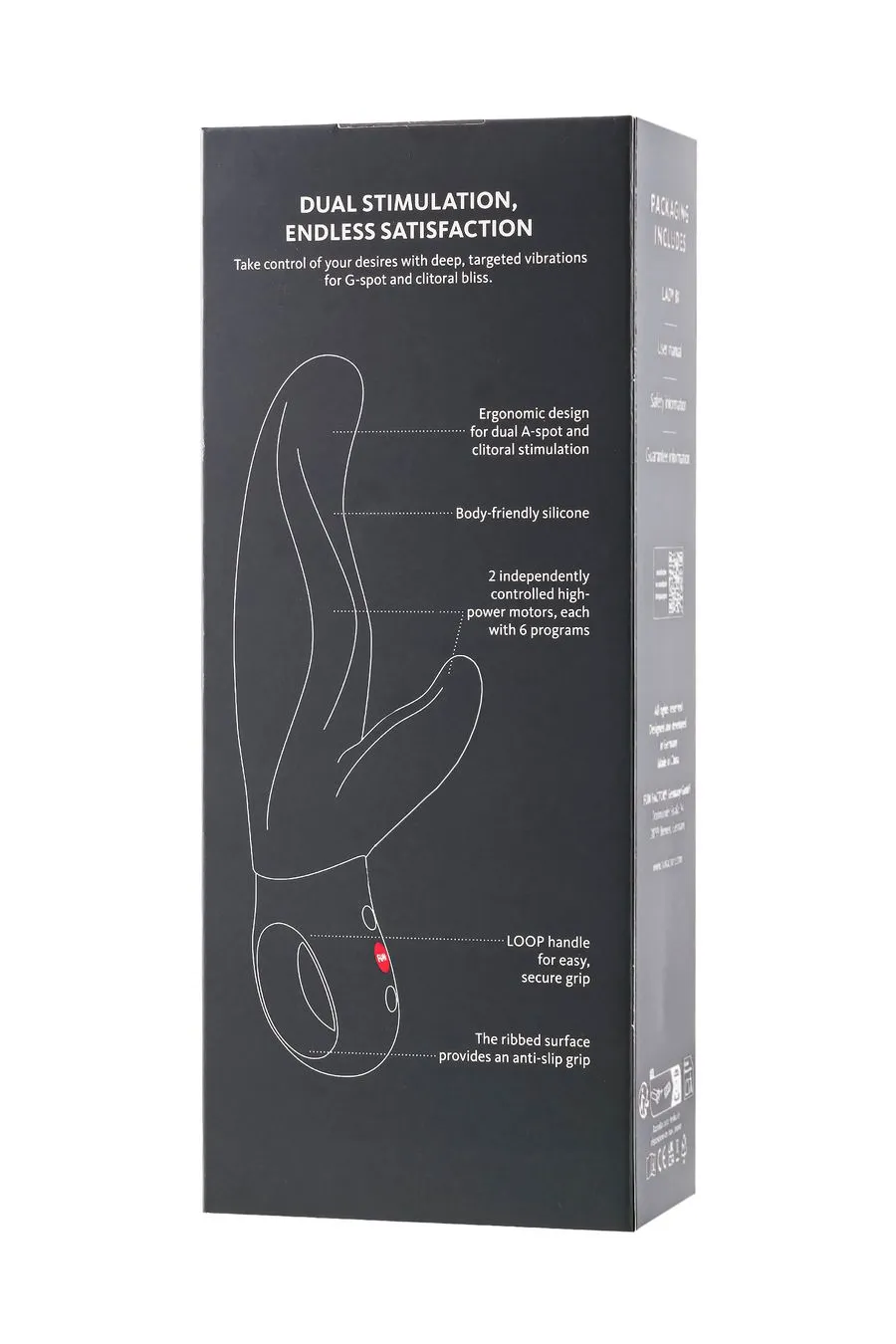 Каждый мотор предлагает 6 скоростей и 6 режимов вибрации, создавая бесконечное разнообразие ощущений. Благодаря эргономичной петлеобразной ручке с текстурированной ребристой поверхностью для надежного, нескользящего захвата, LADY BI удобно лежит в руке. Используйте его с лубрикантом на водной основе для еще большего комфорта и удовольствия. Кроме того, этот мощный вибратор безопасен для анального использования, заряжается через USB-C ( в комплект не входит), водонепроницаем (IPX7) и открывает еще больше возможностей. Изготовленный из высококачественного, приятного для тела, гипоаллергенного силикона, LADY BI легко чистится и прослужит долго.