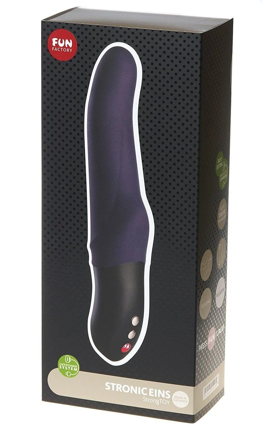 Stronic Eins от Fun Factory - это пульсатор с уникальным запатентованным двигателем, способным воспроизводить мощные импульсы, которые освободят Вас от необходимости делать поступательные движения рукой. Округлая и слегка изогнутая форма пульсатора сделает проникновение легким и приятным. А широкое основание игрушки будет воздействовать на клитор, делая ощущения от стимуляции еще более насыщенными. У Stronic Eins есть 10 режимов пульсации, которые позволят Вам поэкспериментировать и каждый раз открывать для себя новые ощущения во время любовной игры.