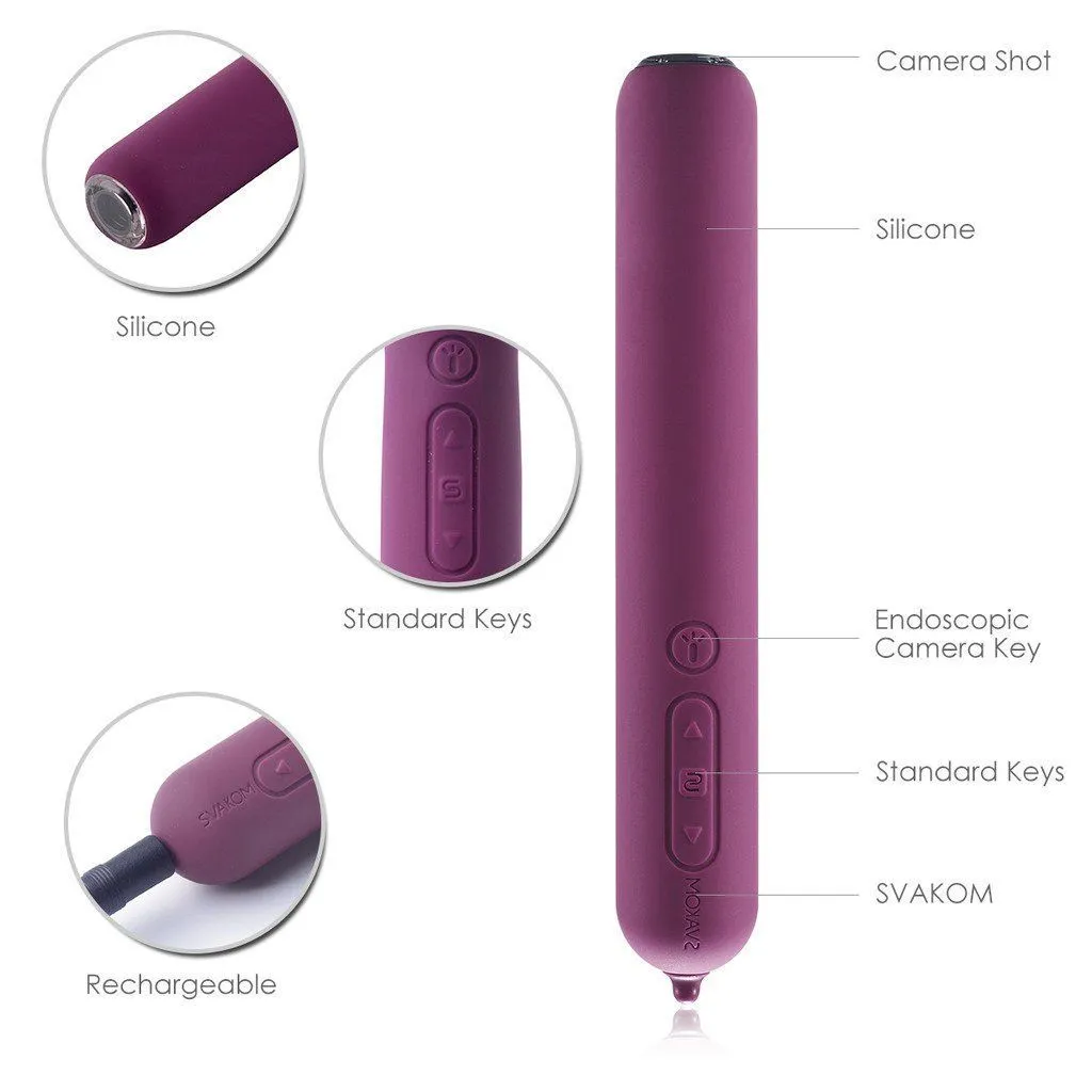 Пожалуй, Siime - это самый необычный вибратор от компании Svakom. Он имеет множество режимов для различного типа стимуляции. Но самое примечательное то, что он снабжен встроенной видеокамерой со светодиодной подсветкой! Вибратор универсален: он может стать фетишем во время ролевых игр, или можно использовать его для виртуального секса, так как он позволит отправить партнеру изображение в любую точку мира.