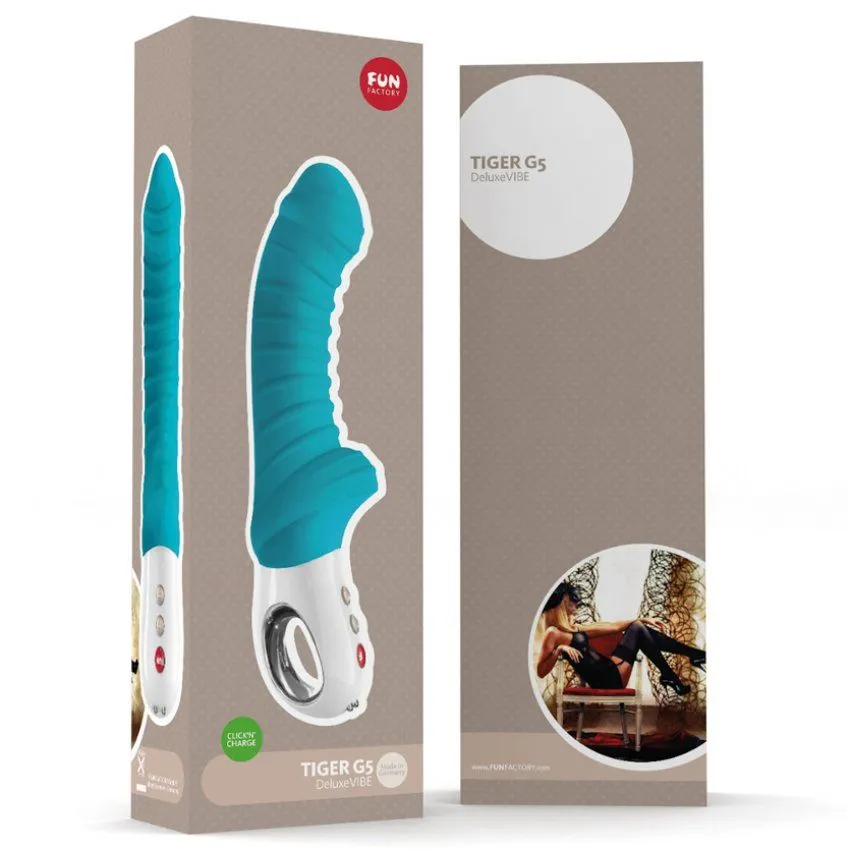 Tiger G5 - изысканный вибратор в бирюзовом цвете от компании Fun Factory, который впечатлит Вас своей элегантной рельефной формой и сильнейшими вибрациями!