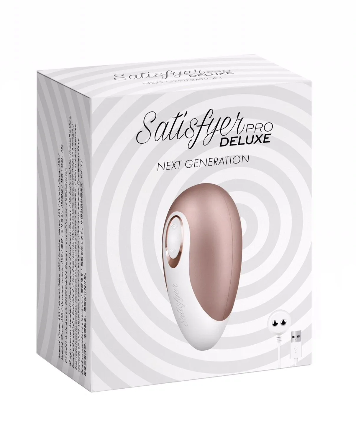 Satisfyer Pro Deluxe Next Generation гарантирует получение многократных интенсивных оргазмов в течение 1-3 минут! Инновационная технология клиторального стимулятора – вакуум-волновая пульсация – это мощная и продолжительная волна удовольствия, которая разнесется по всему Вашему телу сладкой негой. Игрушка воздействует на клитор без прямого контакта с ним, мягкий силиконовый носик будет лишь слегка касаться области вокруг него. Благодаря этому Вы почувствуете взрывную волну наслаждения, ведь клитор не потеряет чувствительность, как это часто бывает при использовании обычного вибратора. Pro Deluxe обладает одиннадцатью режимами пульсации и сможет удовлетворить любые Ваши желания!