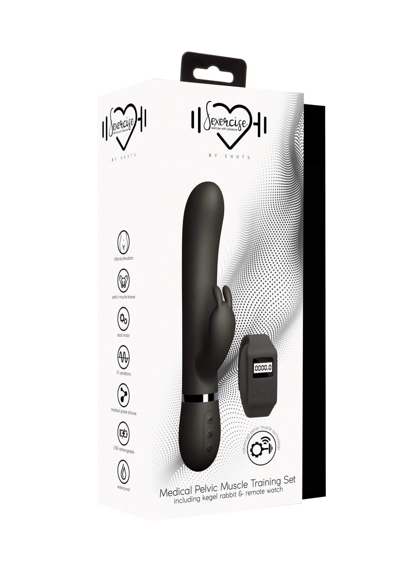 Kegel Rabbit сочетает в себе функциональность тренажера Кегеля и вибратора с дистанционным пультом управления. С ним Вы сможете поддерживать мышцы тазового дна в тонусе и получать удовольствие во время тренировок! У него есть два мотора, один из которых расположен в стволе с загнутым кончиком, а второй - в стимуляторе в виде зайчика, направленного на клитор. Благодаря одновременной стимуляции клитора и влагалища ощущения от интимного массажа станут более яркими и позволят быстрее достичь оргазма. У обоих моторов есть 10 режимов вибрации, переключающихся кнопками на корпусе игрушки или на браслете.