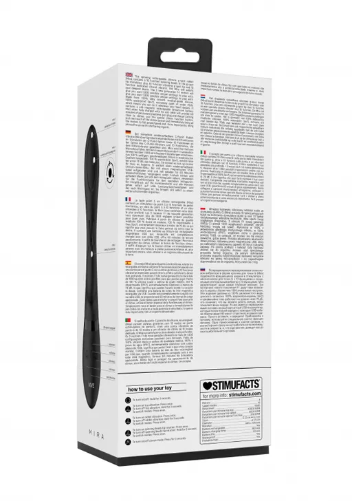 Mira – необычный вибромассажер-кролик с вращающимся шариком на вагинальном отростке. Он изготовлен из высококачественного, мягкого, нежного на ощупь 100% медицинского силикона с пылеотталкивающими свойствами и прочного, элегантного АБС-пластика. Вибромассажер оснащен инновационными электродвигателями нового поколения F1. Преимущество такого типа двигателя в том, что он делает интенсивную стимуляцию очень мягкой даже при мощном максимальном воздействии. Игрушка имеет три мощных отдельных мотора, каждый из которых обеспечивает 10 функций вибрации, способной достигать 8500 и 9000 оборотов в минуту. Это дает возможность настраивать более чем 1000 уникальных комбинаций.