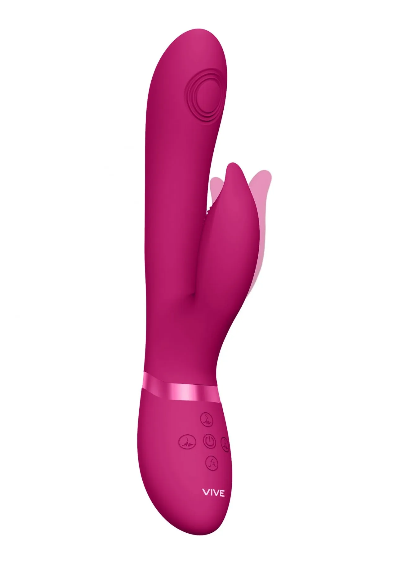 Изготовлено изделие из шелковистого медицинского (гипоаллергенного) силикона и как большинство моделей линейки VIVE имеет кнопку мгновенного оргазма, запуская все моторы на максимум одним касанием.