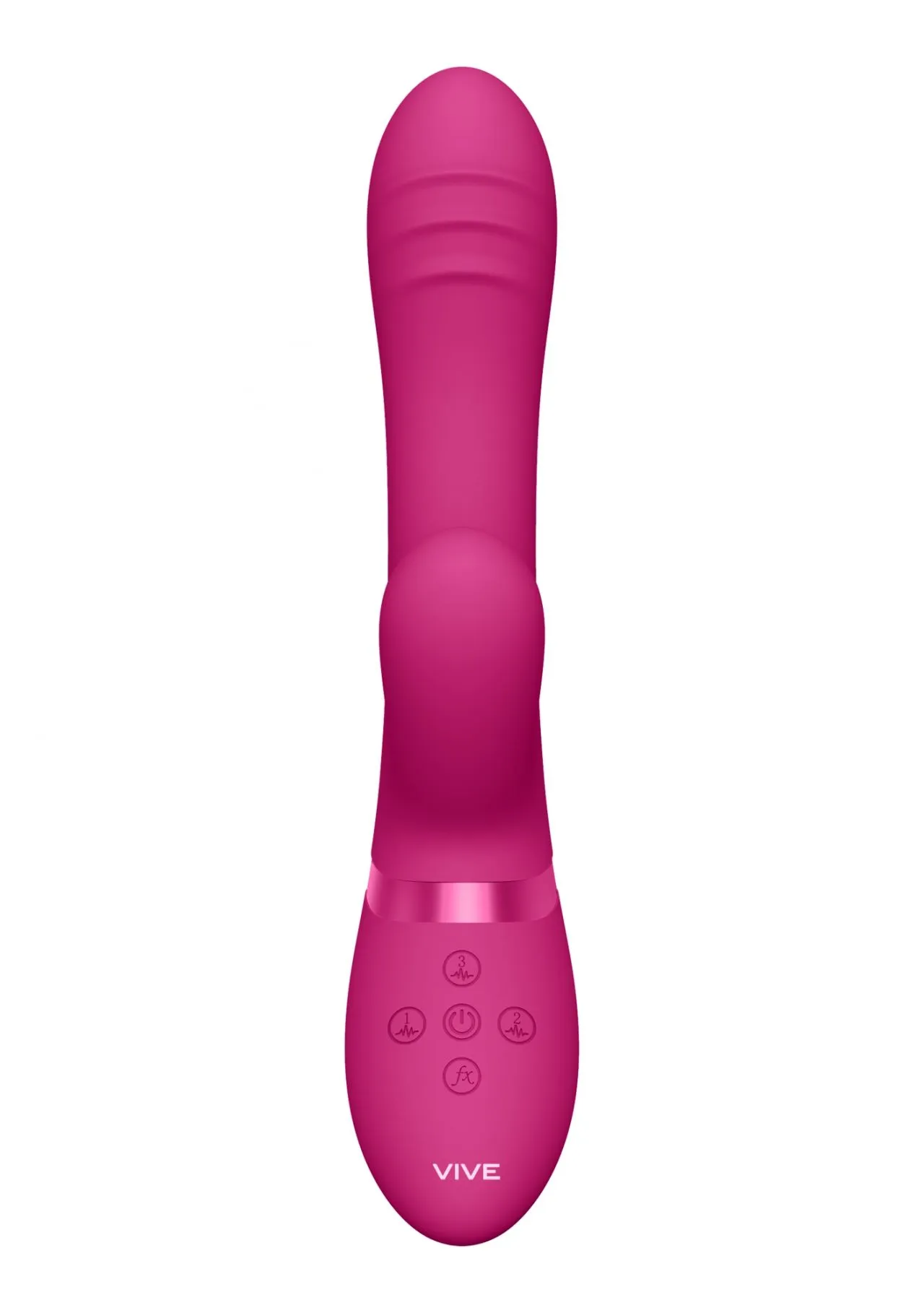 Изготовлено изделие из шелковистого медицинского (гипоаллергенного) силикона и как большинство моделей линейки VIVE имеет кнопку мгновенного оргазма, запуская все моторы на максимум одним касанием.