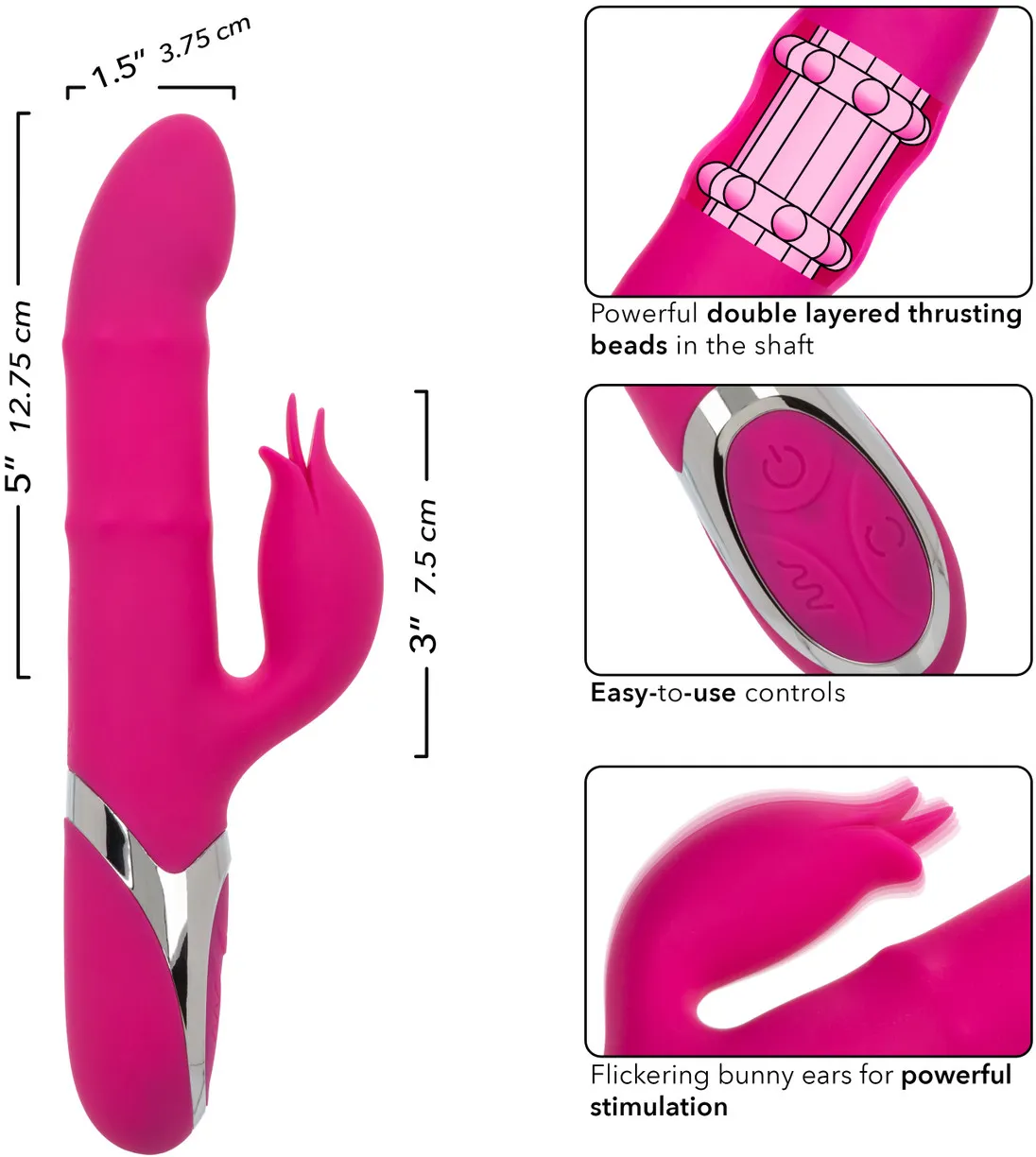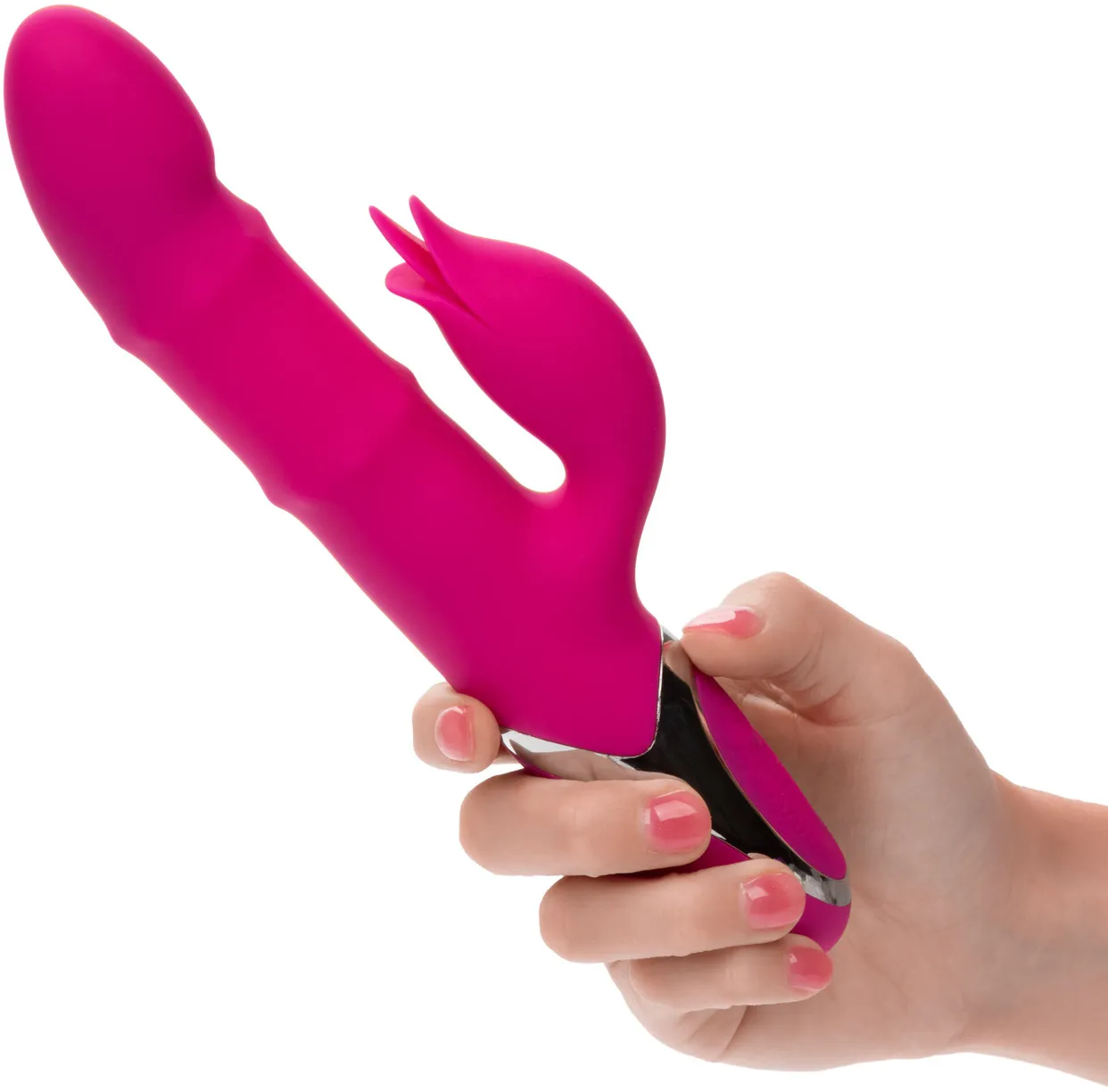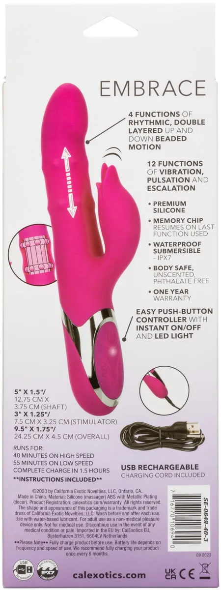 Enchanted Embrace - – перезаряжаемый вибромассажер с клиторальным отростком в форме бутона Изготовлен из бесшовного, гипоаллергенного, безопасного для тела, не содержащего фталатов силикона премиум-класса, не имеет без запаха. Два мощных мотора обеспечивает 12 интенсивных режимов вибрации и 4 функции пенетрации бусинами по всему стволу.