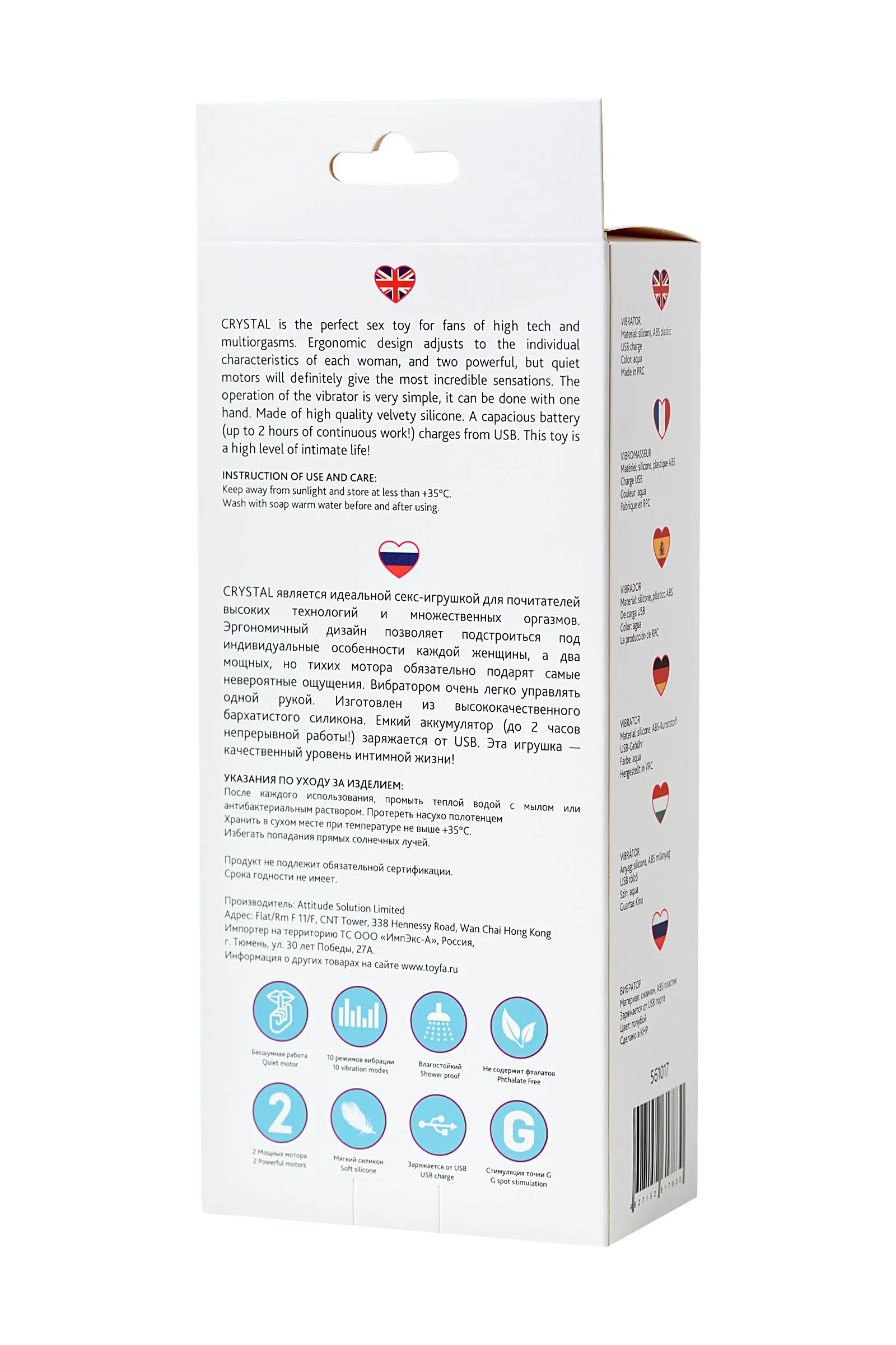 CRYSTAL является идеальной секс-игрушкой для почитателей высоких технологий и множественных оргазмов. Эргономичный дизайн позволяет подстроится под индивидуальные особенности каждой женщины, а два мощных, но тихих мотора обязательно подарят самые невероятные ощущения. Вибратором очень легко управлять одной рукой. Изготовлен из высококачественного бархатистого силикона. Емкий аккумулятор (до 2 часов непрерывной работы!) заряжается от USB. Эта игрушка — качественный уровень интимной жизни!