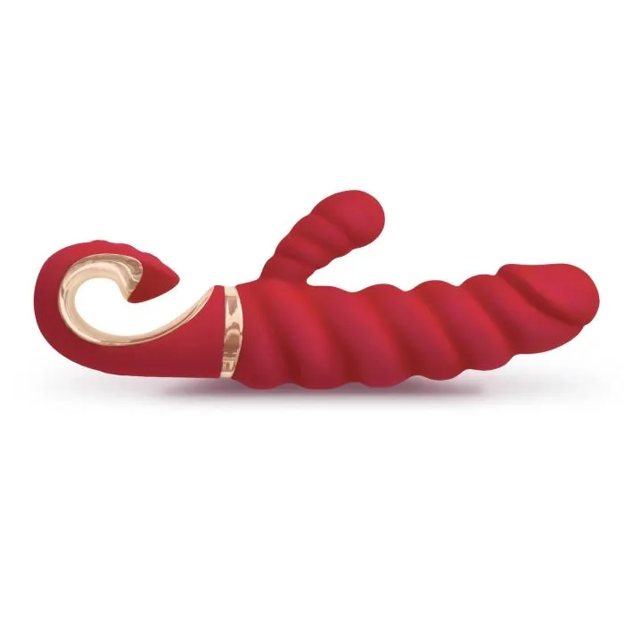 Витой вибростимулятор с клиторальным стимулятором, красный