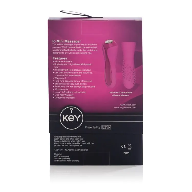 Key Io by Jopen - это элегантный и компактный вибратор с несколькими режимами работы . Изготовлен из гипоаллергенного пластика, который является одним из самых безопасных материалов. В комплекте с эксклюзивной игрушкой есть две силиконовые насадки с различной текстурой. Массажер поддерживает пять различных режимов вибрации, переключаемых кнопкой из нержавеющей стали, которая находится у основания. Подходит для стимуляции любой эрогенной зоны. Работает от одной батарейки типа АА (в комплект не входит). Отключается при удерживании кнопки более трех секунд. Вибратор водонепроницаемый, бесшумный и очень легкий в уходе.
