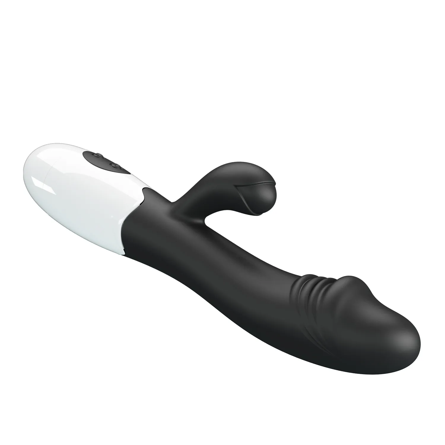 Вибратор Snappy от бренда PRETTY LOVE изготовлен из ABS и силикона. Он оснащён мощным мотором, предлагающим 30 функций вибрации, и работает на 2 батарейках типа AAA. Устройство предназначено для одновременного стимулирования точки G и клитора, обеспечивая интенсивные ощущения. Гибкая конструкция позволяет поддерживать контакт с клитором в любом положении, а простое управление позволяет настраивать интенсивность вибраций или отключать стимуляцию точки G или клитора. Общий диаметр вибратора — 3,2 см, общая длина — 19 см, длина рабочей части — 9,5 см. Вес — 107 грамм.