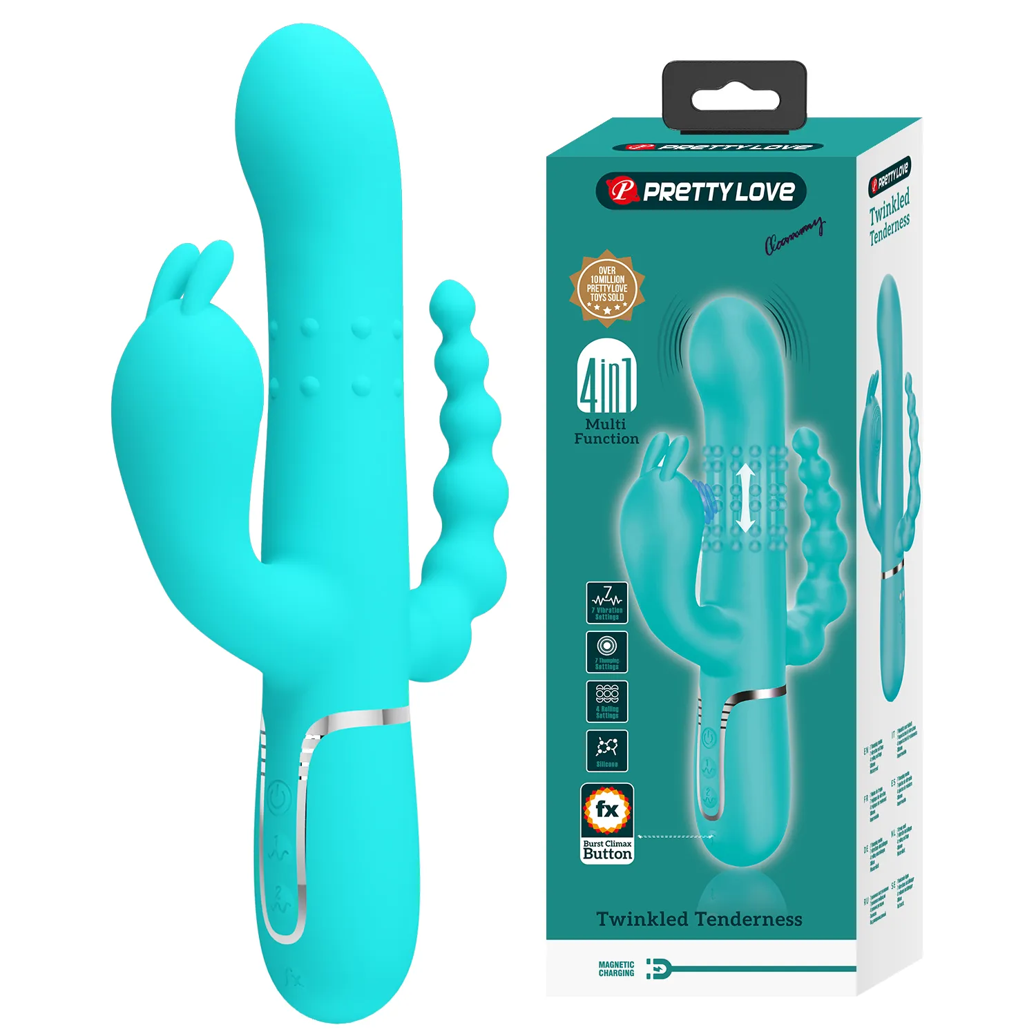 Тройная стимуляция с помощью особо мощных вибраций! Тройной вибратор Pretty Love - это изящно изогнутый вибратор-кролик с анальным стимулятором, который обеспечивает одновременную вагинальную, клиторальную и анальную стимуляцию. Его головка оснащена 7 функциями вибрации, а стержень с 4 функциями перекатывания шариков массирует влагалище и особенно точку G. Стимулятор клитора идеально воздействует на внешние горячие точки благодаря 7 функциям стимуляции толчками, в то время как гибкие шарики стимулируют анальную область. А нажатие кнопки Brust Climax может обеспечить всестороннюю стимуляцию в лучшем виде! Силиконовая конструкция с шелковистой текстурой, приятной на ощупь, позволяет легко вводить. Она идеально адаптируется к анатомии и движениям тела.
