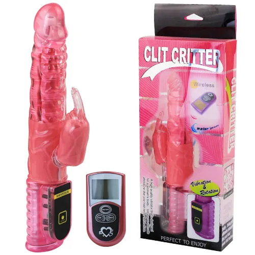 Дистанционный Хай-Тек Clit Criter розового цвета с функцией вращения ствола и  клиторальным стимулятором в виде зайчика. Работает от 4-х батареек типа ААА (в комплект не входят). В комплект входит пульт и батарейка к пульту типа 23А. Общая длина 26 см, рабочая длина 14 см, диаметр 3,5 см, длина стимулятора 7 см, диаметр стимулятора 3 см. Пульт работает от 1 батарейки 23А (есть в комплекте)