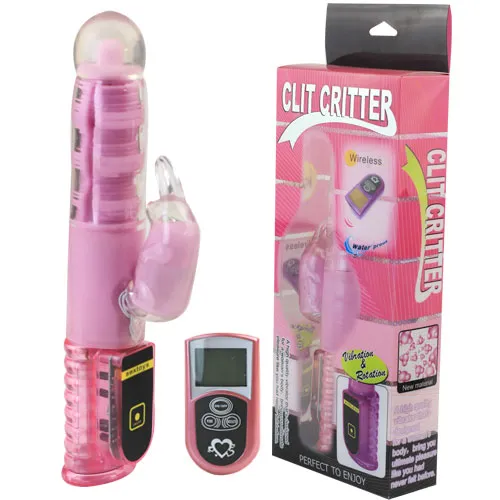 Дистанционный Хай-Тек Clit Criter Rabit розового цвета с функцией вращения ствола и  клиторальным стимулятором в виде зайчика. Работает от 4-х батареек типа ААА (в комплект не входят). В комплект входит пульт и батарейка к пульту типа 23А. Общая длина 25 см, рабочая длина 12,5 см, диаметр 4 см, длина стимулятора 5 см, диаметр стимулятора 3 см. Упаковка: пластиковая коробка.