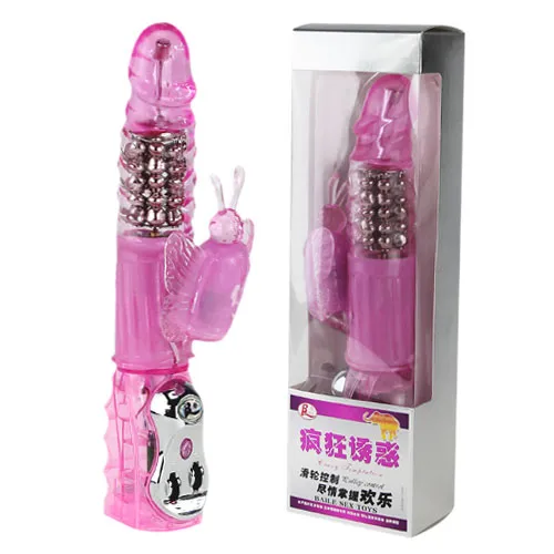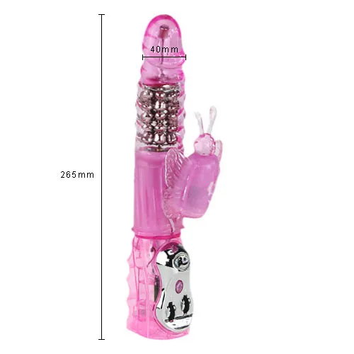 Водонепроницаемый вибромассажер с функцией вращения ствола и мощным клиторальным стимулятором в форме бабочки. Cкорость вибрации и скорость ротации регулируются с помощью отдельных колесиков, расположенных на  ручке игрушки. Вращение осуществляется при помощи металлических шариков, расположенных внутри. Мягкий, имеет не пористую структуру . Материал изготовления-ПВХ ( гель) и пластик АВС. Работает от четырех батареек типа АА ( нет в комплекте). Общая длина: 26 см. Рабочая длина: 12 см, максимальный диаметр 3,5 см, длина стимулятора 7,5 см, диаметр 3 см. Упаковка прозрачная коробка с принтом.