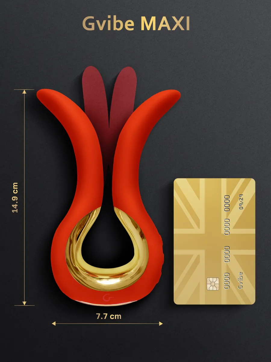 Gvibe Maxi увеличенная и более мощная версия нашего бестселлера Gvibe mini, с таким же удобным инновационным дизайном и раздельным валом. Gvibe Maxi обеспечивает более интенсивную одновременную двойную стимуляцию и двойное проникновение. Это идеальный универсальный стимулятор для пар и путешествий, с ярким дизайном и роскошной золотистой отделкой.