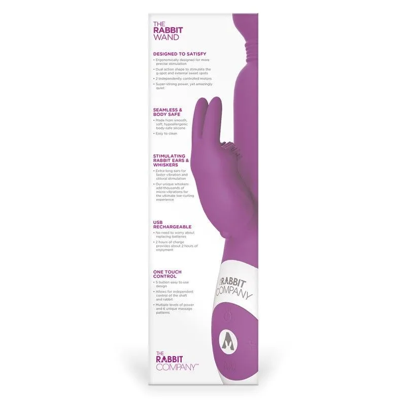 The Rabbit Wand представляет собой два самых популярных вибратора (Wand и кролик), которые были совмещены в один многофункциональный вибратор от компании The Rabbit Company. Крупная и упругая головка игрушки обеспечит мощную стимуляцию вагины или внешних эрогенных зон, а небольшой отросток в виде кролика - интенсивную стимуляции клитора.