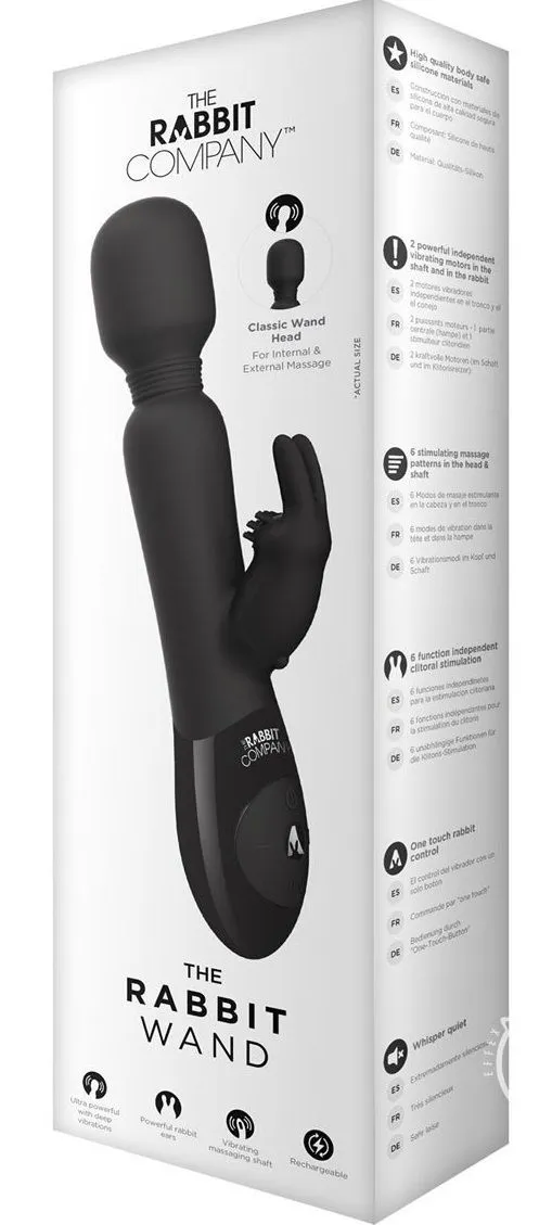 The Rabbit Wand представляет собой два самых популярных вибратора (Wand и кролик), которые были совмещены в один многофункциональный вибратор от компании The Rabbit Company. Крупная и упругая головка игрушки обеспечит мощную стимуляцию вагины или внешних эрогенных зон, а небольшой отросток в виде кролика - интенсивную стимуляции клитора.