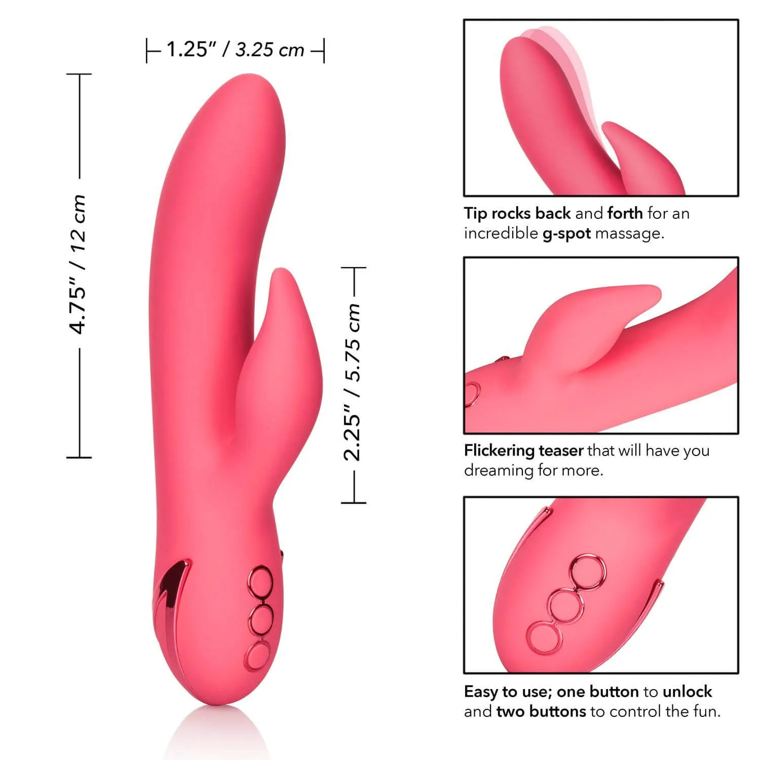 Вибратор Sweetheart сможет подарить Вам двойное удовольствие за счет одновременного воздействия на внутренние и внешние эрогенные зоны. Расположенная под углом головка вибратора будет воздействовать на точку G, в то время как небольшой стимулятор будет ласкать клитор, даря Вам незабываемый чувственный опыт. Игрушка обладает 10 режимами вибрации стимулятора, а также 3 особыми режимами, при которых ствол будет совершать поступательные движения. Эти режимы могут работать как вместе, так и независимо от друг от друга, что позволит Вам настроить игрушку по своему усмотрению.