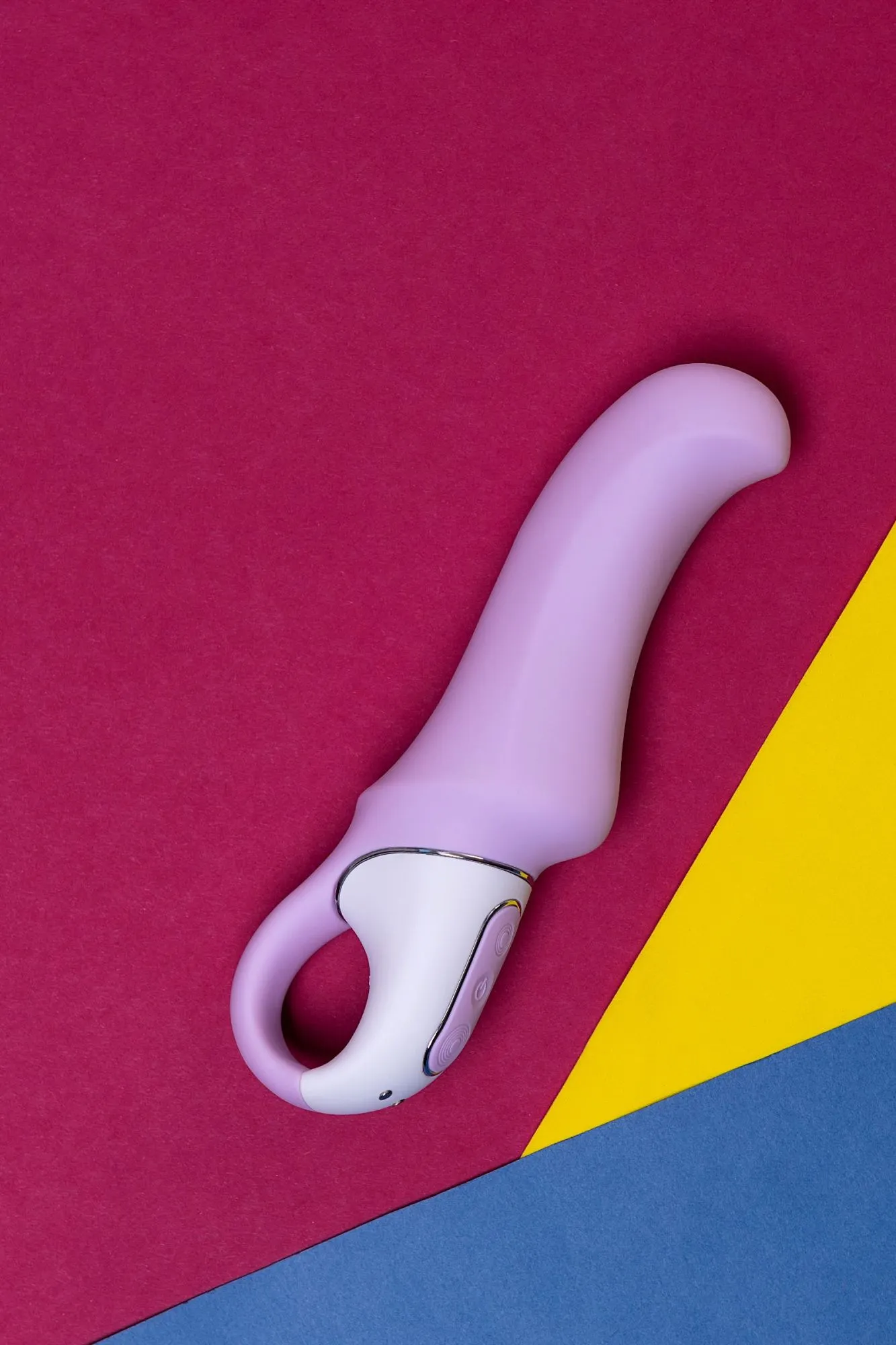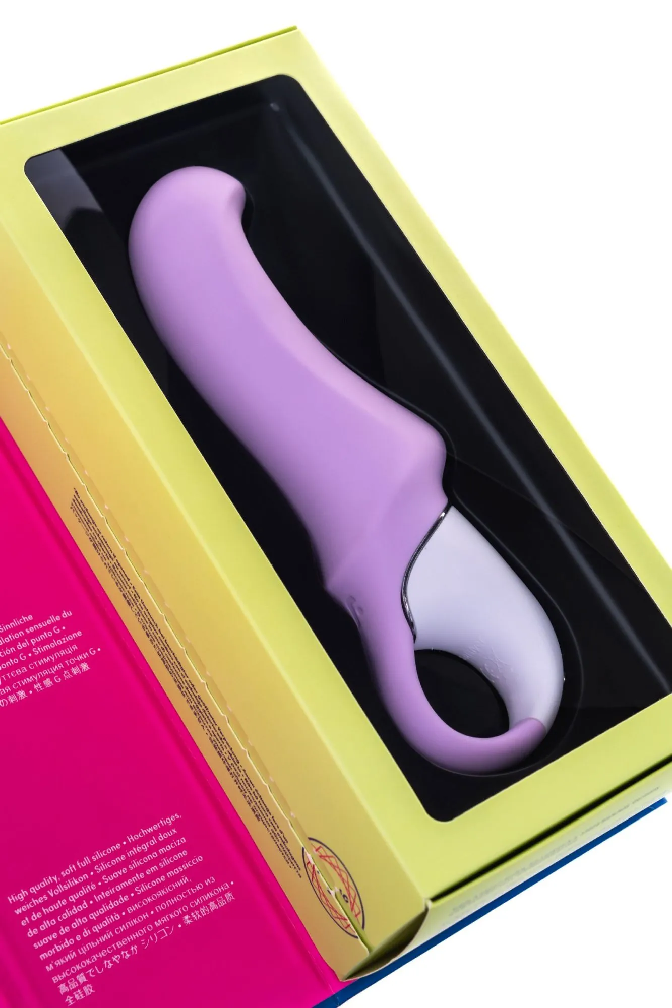 Нереалистичный вибратор Satisfyer Vibes Charming Smile — настоящий дамский угодник. Мгновенно покоряет шелковистой поверхностью, нежно стимулирует точку G и легко помещается в сумочке. Хорошее настроение теперь всегда может быть с вами! Поддайтесь очарованию Satisfyer Vibes Charming Smile, и он обворожит вас своими способностями. Смелая комбинация из гибкого ствола и плавно изогнутой головки будет деликатно и очень искусно ласкать вашу точку G. Рельефный изгиб у основания окажет должное внимание входу во влагалище. 12 восхитительных программ вибрации пробудят даже «спящие» эрогенные зоны. А два мощных независимых мотора, которые можно подключать синхронно или по очереди, доведут до кульминации. Вы не захотите расставаться с этим удовольствием. И не надо! Полная водонепроницаемость и компактный размер позволяют брать вибратор с собой куда угодно — в душ или расслабляющую ванну, в командировку или в отпуск. Не отказывайте себе ни в чем. Секрет хорошего настроения найден — это Satisfyer Vibes Charming Smile.