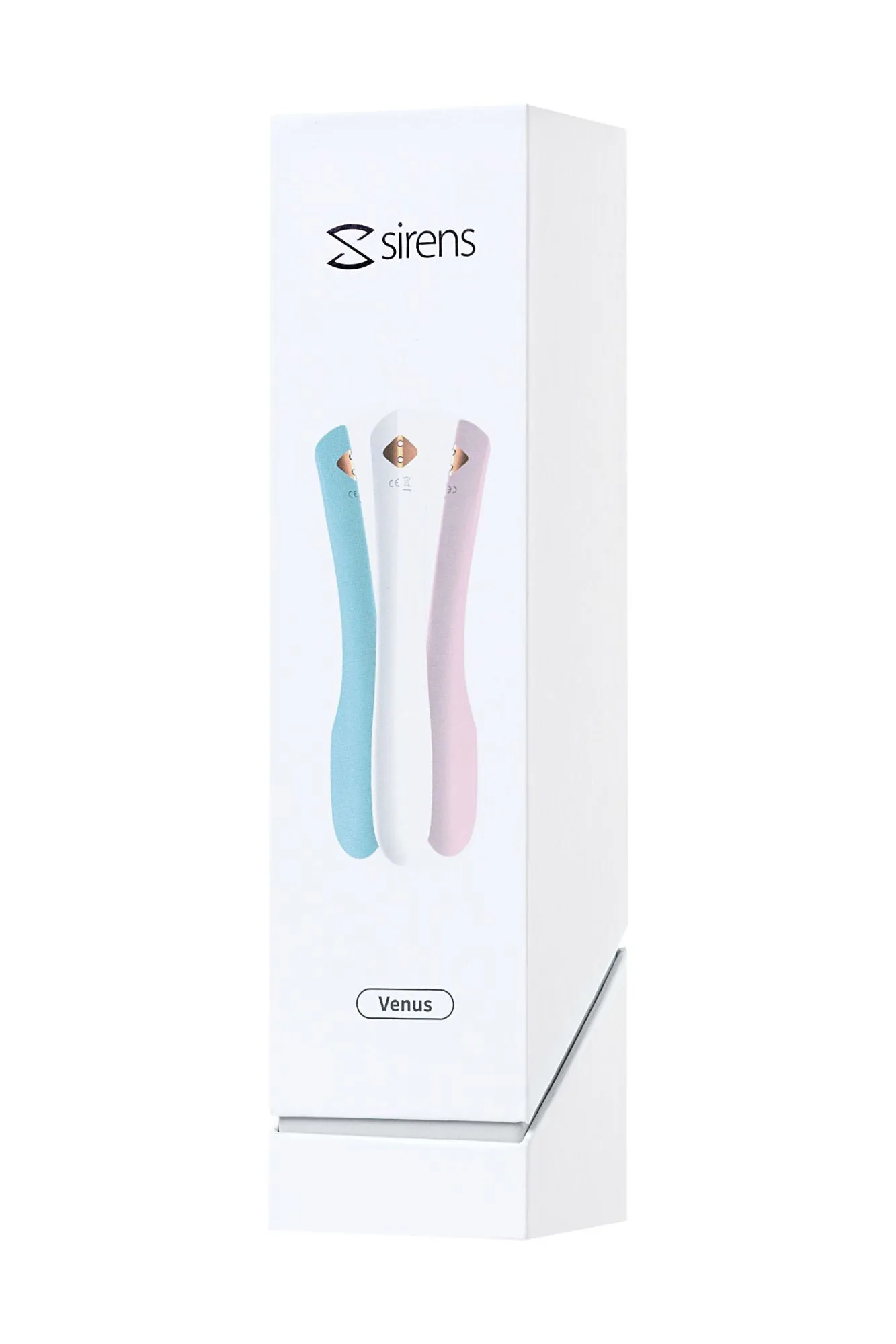 Sirens Venus — многофункциональный вибромассажер, который готов взять ответственность за ваше здоровье и настроение. Он тонизирует мышцы, снимает усталость и расслабляет после загруженного дня. С его помощью вы можете массировать шею, лицо и даже утомленные каблуками ножки. 7 режимов интенсивной вибрации и гибкий корпус легко превращаются в полноценную спа-программу. Вас приятно удивит дополнительная функция Sirens Venus — режим биологической обратной связи. Он предлагает испытать совершенно новый опыт во время стимуляции интимной зоны. Сенсоры вибромассажера реагируют на сжатие корпуса мгновенным усилением вибрации, что приводит к качественной сексуальной разрядке. Гипоаллергенный медицинский силикон дарит непередаваемые ощущения при каждом прикосновении, а его безопасность подтверждена сертификатами CE, FCC и ROHS. Бесшовный дизайн и класс водонепроницаемости IPX7 позволяют погружать вибромассажер на значительную глубину для использования под водой. Установленные режимы и двойной сенсор на 360° помогают задать персональные параметры настройки в соответствии с вашей чувствительностью. Интерактивный интерфейс дает возможность управлять режимами вибрации с вашего смартфона. Бесшумный мотор, рабочая громкость которого ниже 50 Дб, сохраняет тишину и не нарушает атмосферу релакса. Магнитная зарядка с применением технологии магнитопоглощения быстро и удобно заряжает устройство. Емкий аккумулятор обеспечивает 2,5 часа непрерывной работы девайса, 6 месяцев — в режиме ожидания. В комплекте стильный мешочек для хранения. Sirens Venus — умный массажер для вашего удовольствия.