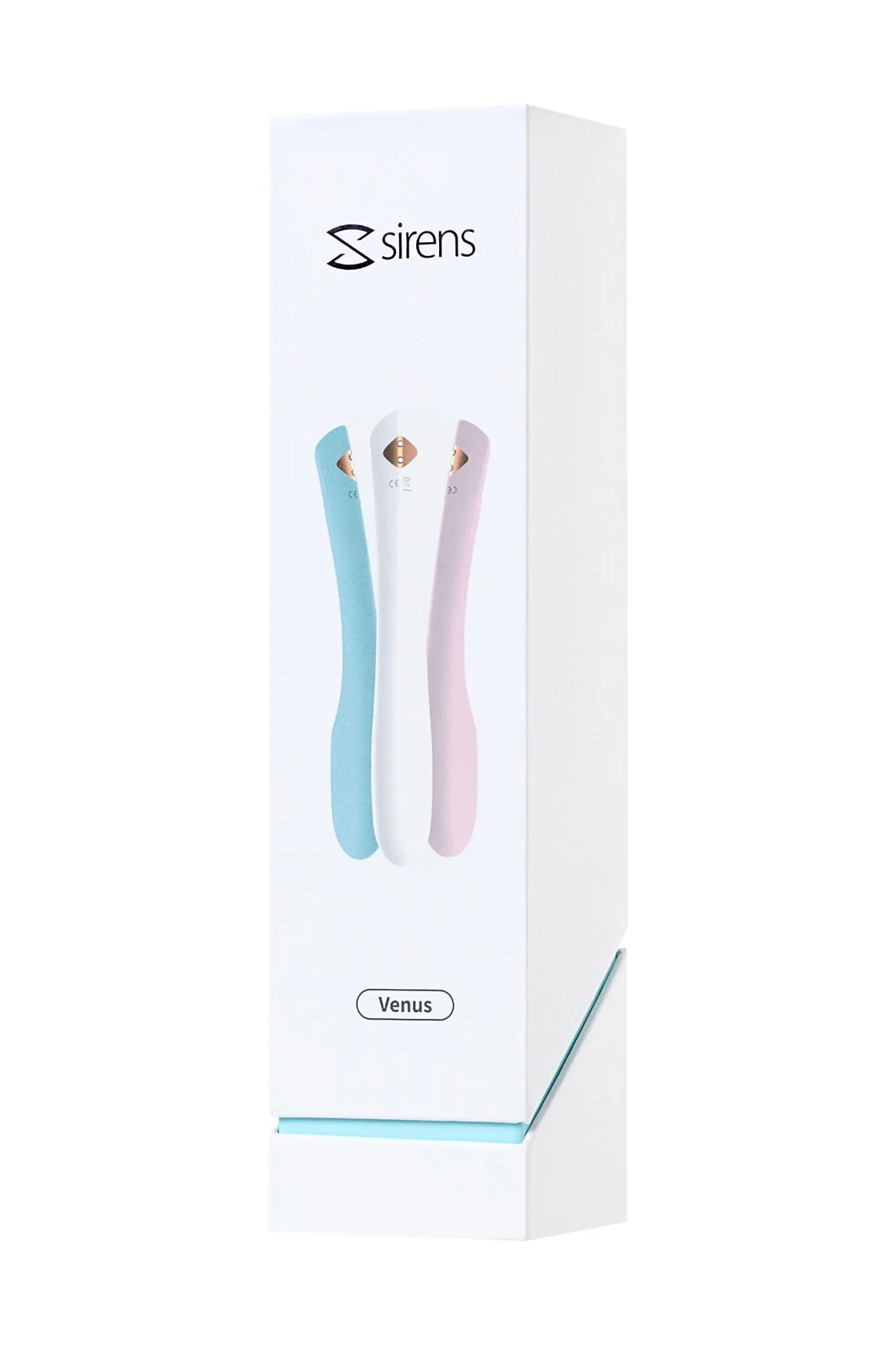 Sirens Venus — многофункциональный вибромассажер, который готов взять ответственность за ваше здоровье и настроение. Он тонизирует мышцы, снимает усталость и расслабляет после загруженного дня. С его помощью вы можете массировать шею, лицо и даже утомленные каблуками ножки. 7 режимов интенсивной вибрации и гибкий корпус легко превращаются в полноценную спа-программу. Вас приятно удивит дополнительная функция Sirens Venus — режим биологической обратной связи. Он предлагает испытать совершенно новый опыт во время стимуляции интимной зоны. Сенсоры вибромассажера реагируют на сжатие корпуса мгновенным усилением вибрации, что приводит к качественной сексуальной разрядке. Гипоаллергенный медицинский силикон дарит непередаваемые ощущения при каждом прикосновении, а его безопасность подтверждена сертификатами CE, FCC и ROHS. Бесшовный дизайн и класс водонепроницаемости IPX7 позволяют погружать вибромассажер на значительную глубину для использования под водой. Установленные режимы и двойной сенсор на 360° помогают задать персональные параметры настройки в соответствии с вашей чувствительностью. Интерактивный интерфейс дает возможность управлять режимами вибрации с вашего смартфона. Бесшумный мотор, рабочая громкость которого ниже 50 Дб, сохраняет тишину и не нарушает атмосферу релакса. Магнитная зарядка с применением технологии магнитопоглощения быстро и удобно заряжает устройство. Емкий аккумулятор обеспечивает 2,5 часа непрерывной работы девайса, 6 месяцев — в режиме ожидания. В комплекте стильный мешочек для хранения. Sirens Venus — умный массажер для вашего удовольствия