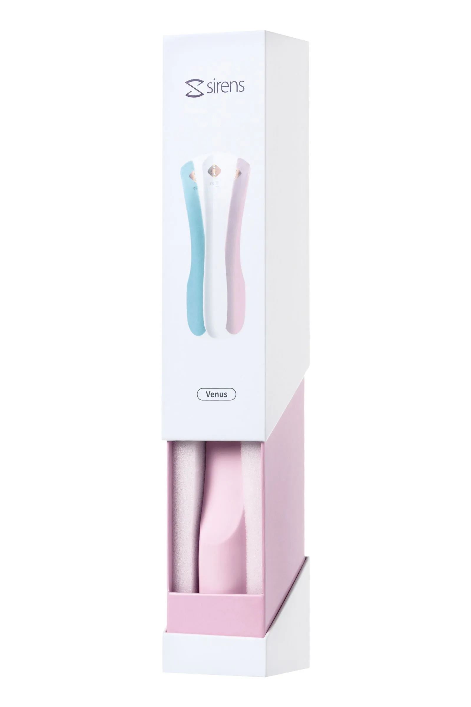 Sirens Venus — многофункциональный вибромассажер, который готов взять ответственность за ваше здоровье и настроение. Он тонизирует мышцы, снимает усталость и расслабляет после загруженного дня. С его помощью вы можете массировать шею, лицо и даже утомленные каблуками ножки. 7 режимов интенсивной вибрации и гибкий корпус легко превращаются в полноценную спа-программу. Вас приятно удивит дополнительная функция Sirens Venus — режим биологической обратной связи. Он предлагает испытать совершенно новый опыт во время стимуляции интимной зоны. Сенсоры вибромассажера реагируют на сжатие корпуса мгновенным усилением вибрации, что приводит к качественной сексуальной разрядке. Гипоаллергенный медицинский силикон дарит непередаваемые ощущения при каждом прикосновении, а его безопасность подтверждена сертификатами CE, FCC и ROHS. Бесшовный дизайн и класс водонепроницаемости IPX7 позволяют погружать вибромассажер на значительную глубину для использования под водой. Установленные режимы и двойной сенсор на 360° помогают задать персональные параметры настройки в соответствии с вашей чувствительностью. Интерактивный интерфейс дает возможность управлять режимами вибрации с вашего смартфона. Бесшумный мотор, рабочая громкость которого ниже 50 Дб, сохраняет тишину и не нарушает атмосферу релакса. Магнитная зарядка с применением технологии магнитопоглощения быстро и удобно заряжает устройство. Емкий аккумулятор обеспечивает 2,5 часа непрерывной работы девайса, 6 месяцев — в режиме ожидания. В комплекте стильный мешочек для хранения. Sirens Venus — умный массажер для вашего удовольствия.