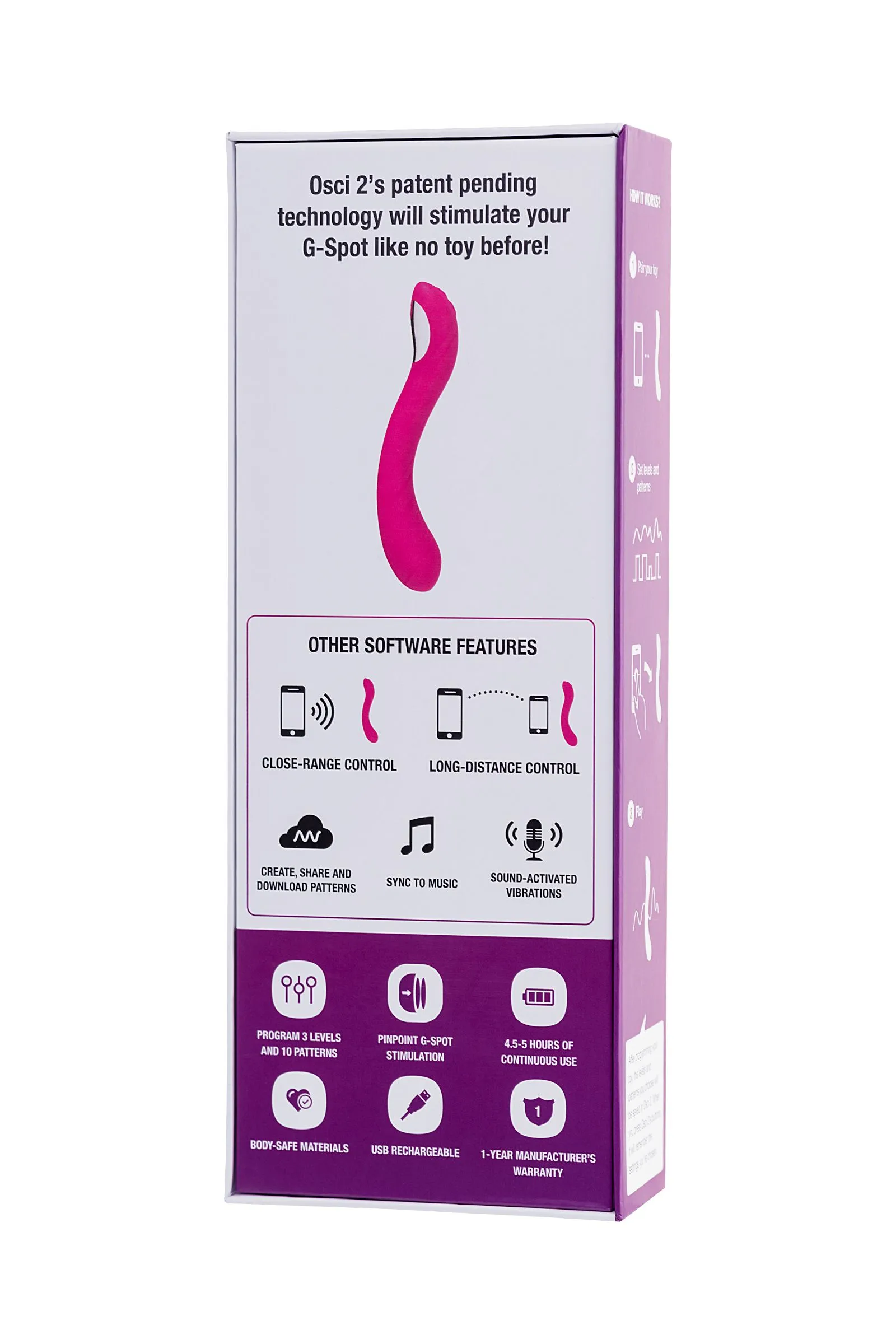 Lovense Osci 2 представляет собой первый в мире осциллирующий ванд, специально разработанный для точки G. Компания Lovense, являющаяся одним из ведущих производителей секс-игрушек, снова удивляет рынок этим инновационным продуктом. Lovense Osci 2 — это уникальная возможность для женщин насладиться новыми уровнями удовольствия и расширить сексуальные горизонты. Особенностью Osci 2 является его уникальный и запатентованный колебательный механизм, который обеспечивает точную и целенаправленную стимуляцию точки G – больше, чем просто вибрация. По сравнению с обычными вибрирующими игрушками, Osci 2 от Lovense дарит совершенно иное ощущение. Эти осцилляции похожи на вибрацию, но гораздо более целенаправленны. 350 осцилляций/мин подарят вам невероятные оргазмы. В устройстве предустановлено 10 паттернов осцилляций и 3 уровня интенсивности. Osci 2 – это великолепный ультрасовременный дизайн с гладким силиконом и привлекательным внешним видом. Вогнутая овальная головка Osci 2 идеально подходит точке G. Кроме того, точная S-образная кривая тела игрушки соответствует изгибу вашего влагалища. Рабочая длина 8 см, диаметр головки 3,9 см. 100% безопасный высококачественный силикон обладает шелковистой поверхностью – особенный комфорт в ваших руках. Яркий сочный розовый цвет – визитка игрушек от Lovense. Неограниченные возможности с приложением Lovense Remote. Osci 2 — это полностью программируемый осциллирующий ванд с управлением на расстоянии, который можно настроить на широкий диапазон уровней осцилляции. Lovense создали два приложения для управления игрушкой: Lovense REMOTE для обычных пользователей и Lovense CONNECT для моделей. Приложение Lovense Remote позволяет выбрать уровень мощности, соответствующий вашим индивидуальным потребностям. Передайте контроль своему партнеру на расстоянии и почувствуйте наслаждение от мощного проникновения. Вы забудете, что ваш партнер не рядом с вами. Возможности сексуальных игр с Osci 2 ограничены только вашей фантазией. отличное подключение в сочетании с множеством функций неограниченное количество паттернов управление с близкого расстояния библиотека с более чем 5000 паттернов синхронизация с музыкой. Osci 2 оснащен функцией подключения к большинству вебкам-чатов и реагирует на токены, а также позволяет передавать удаленное управление с помощью ссылки в вебкам-чате. Уникальная возможность через Lovense CONNECT позволяет выбрать настройки реакции игрушки на количество токенов, установить время и интенсивность осцилляции через приложение. Водонепроницаемость IPX7 – ваша новая игрушка легко моется и идеально подходит для использования в ванне или душе. Длительное время работы батареи – 1,5-часовой зарядки хватит на 4,5-5 часов наслаждения или 120 часов в режиме ожидания. Что в комплекте: Осциллирующий ванд Osci 2 для точки G c Bluetooth USB Кабель для Подзарядки Руководство пользователя Сумка для Хранения