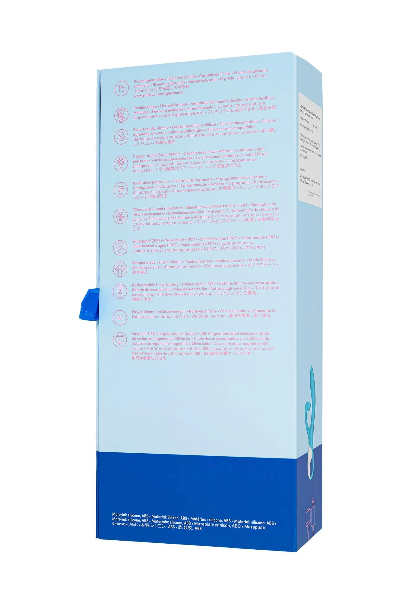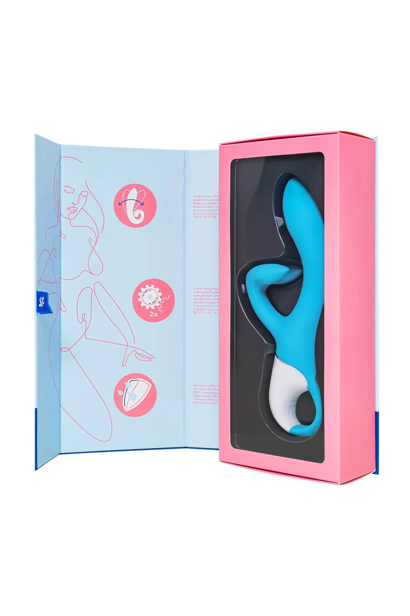 Бирюзовый вибратор-кролик Embrace me от Satisfyer создан дарить глубокую стимуляцию и страстные объятия. Игрушка обладает двумя отростками – вагинальным и клиторальным, которые вместе создают ощущение крепких объятий. Он будто обнимает клиторальную зону изнутри и снаружи, благодаря восхитительной стимуляции чувствительных зон, а значит оргазмы станут неотъемлемой частью каждой встречи. Плавные изгибы и аккуратный рельеф обеспечивают легкое проникновение. Гибкая погружная часть диаметром 4,2 см дарит ощущение заполненности и прицельно стимулирует зону G, подстраиваясь под анатомию индивидуально. Тройной клиторальный отросток имеет три ушка – два из них обнимают клитор с разных сторон, а серединка направлена прямо на него, пружиня при каждом движении и передавая вибрацию на половые губы. 2 мощных мотора пробуждают волны наслаждения, передавая вибрационные ритмы по всей игрушке, стимулируя самые чувствительные области вашего тела и улучшая сексуальное здоровье. Игрушка имеет по 12 паттернов вибрации на каждом моторе, управляется легко и интуитивно кнопками на передней панели. Ручка-кольцо позволит уверенно держать игрушку в самых разнообразных позициях и при любой интенсивности движений. Шелковистое силиконовое покрытие — фирменный знак Satisfyer, тактильно нежный и приятный на ощупь, он быстро адаптируется к температуре вашего тела. Чтобы получить максимум удовольствия и сохранить материал в наилучшем виде, рекомендуется пользоваться качественной смазкой на водной основе. После использования обязательно очищайте вибратор теплой водой со специальными бактерицидными спреями для интимных товаров. Особенности: 2 мощных автономных мотора Гибкий вагинальный отросток создает ощущение наполненности и подстраивается под анатомию индивидуально Изогнутый и упругий тройной клиторальный отросток обнимает и глубоко стимулирует клитор и половые губы Удобная ручка-кольцо и эргономичная форма 12 режимов вибрации для каждого мотора. Бирюзовый цвет и мягкий, эластичный силикон без запаха, без аллергенов и вредных для здоровья веществ. Возможность использовать игрушку в ванной и душе благодаря полной водонепроницаемости (до 30 минут на глубине до 1 метра) – IPX7. Время работы 60 минут. Перезаряжаемый, магнитный USB-кабель, время зарядки 3 часа.