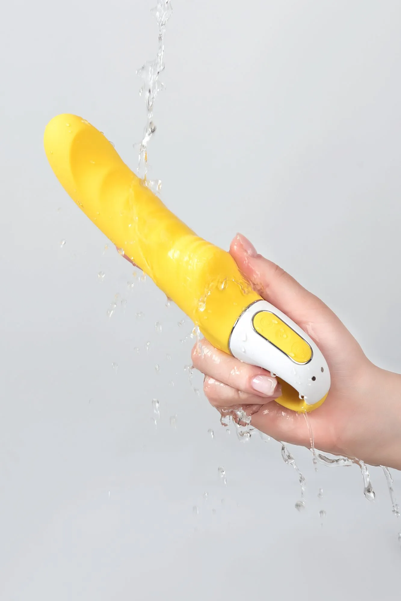 Озорной цвет, дразнящие воображение рельефы, гибкий ствол, 2 мощных мотора и яркая способность безукоризненно стимулировать точку G — нереалистичный вибратор Satisfyer Vibes Yummy Sunshine поднимает настроение и заставляет сиять ваше солнце. Давайте посмотрим, как он это делает. Плавно изогнутая головка и гибкий ствол соблазнительно массируют точку G и повышают градус возбуждения до рекордных отметок. Широкое основание ствола с ощутимым выступом уделяет должное внимание входу во влагалище, усиливая ваше наслаждение. Рельефные волны на стволе дополнительно прорабатывают чувствительные зоны. Шелковистый на ощупь силикон мощно и объемно передает 12 программ головокружительной вибрации, чтобы вы смогли прочувствовать каждый оттенок интимной игры — от игривой прелюдии до энергичной разрядки. 2 мотора идеально точно распределяют сильную вибрацию по всей длине игрушки, помогая датчикам удовольствия зашкаливать от накатывающих эмоций. Полная водонепроницаемость позволяет вибратору сиять для вас не только в спальне, но и в бодрящем душе или расслабляющей ванне. Эргономичная ручка-кольцо со встроенной панелью гарантирует комфортное управление легким нажатием кнопки. Satisfyer Vibes Yummy Sunshine — пусть ярче светит солнце!