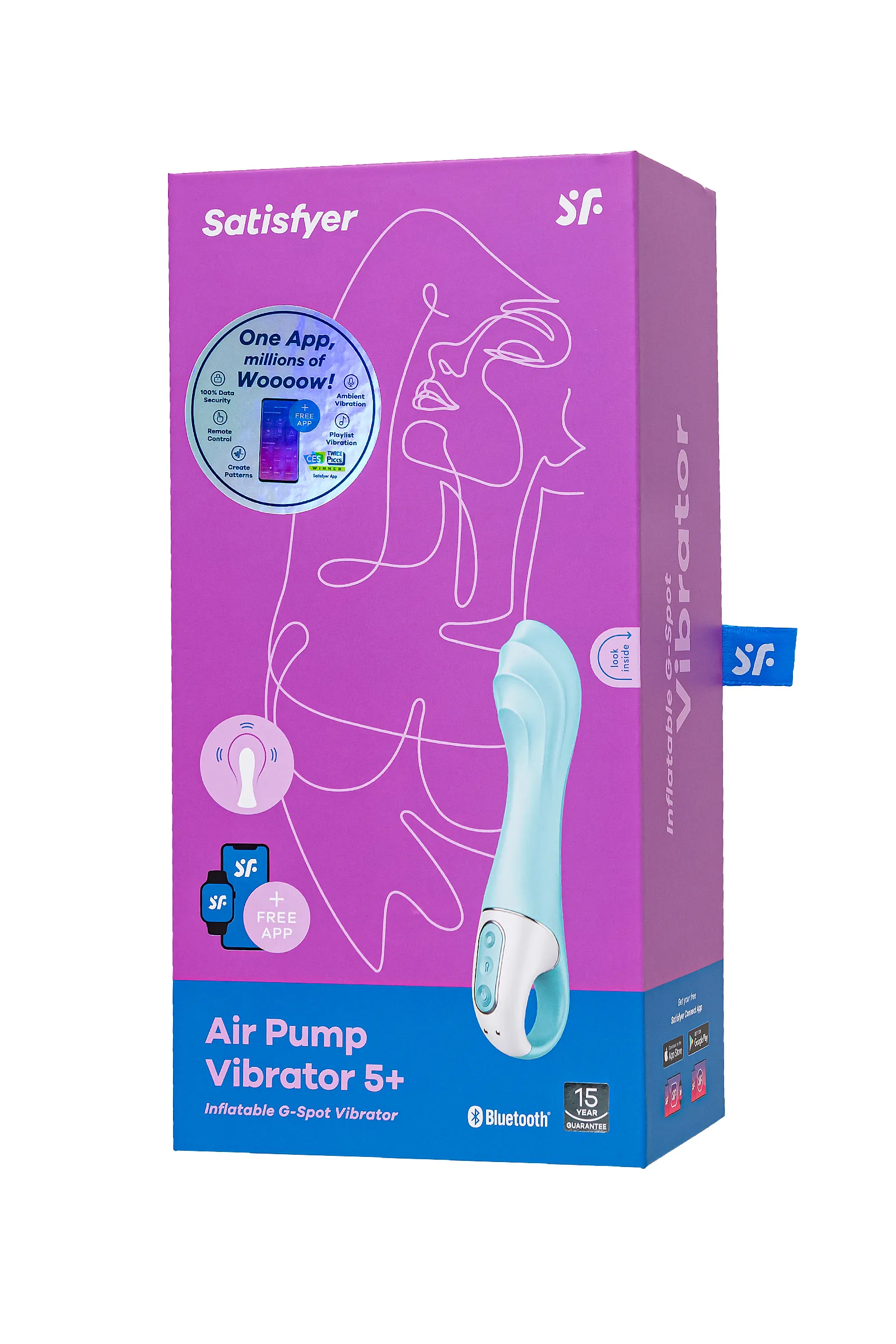 Вибратор-кролик Air Pump Vibrator 5 от Satisfyer способен подарить ощущение заполненности настолько, насколько вам это необходимо. Изюминка девайса в способности увеличивать диаметр ствола от 4-4,5 см до 5,5-6 см за счет самонадувающегося механизма. Усильте свои оргазмы чувственным давлением и вибрацией. Ствол вибратора достаточно упругий, однако при надувании поверхность становится мягкой и податливой. Режим накачки включается однократным нажатием кнопки и прекращает подачу воздуха, когда это необходимо, также однократным нажатием кнопки. Удерживайте кнопку чтобы накачать вибратор всего за 12 секунд. Двойное нажатие легко откачивает воздух. 2 мощных мотора в стволе и гибком отростке пробуждают волны наслаждения, стимулируя вибрацией самые чувствительные области клитора и зоны G. Ручка-кольцо позволит уверенно держать игрушку в самых разнообразных позициях и при любой интенсивности движений. Объемный стержень с широкой закругленной головкой разработан специально для стимуляции точки G и принесет вам самые божественные кульминации. Ребристая поверхность головки оказывает дополнительную стимуляцию чувствительных мест. Игрушка имеет 12 паттернов вибрации, а приложение Satisfyer Connect, доступное на Android и iOS, существенно расширяет возможности предустановленных режимов. Вы можете создавать свои собственные уникальные режимы стимуляции. Девайс поддерживает режим преобразования звуков в вибрацию, поэтому он способен вибрировать даже в такт любимой музыке. Но и это не все – приложение для смартфона имеет функцию чата и даже позволяет передать управление игрушкой другому человеку дистанционно. Satisfyer Connect не имеет границ – в настоящее время поддерживается более 25 языков. Интегрированные функции чата / звонка и видеовызова гарантируют приятное интимное общение. Плавные изгибы и аккуратный рельеф обеспечивают легкое проникновение. Шелковистое силиконовое покрытие — фирменный знак Satisfyer, тактильно нежный и приятный на ощупь, он быстро адаптируется к температуре вашего тела. Чтобы получить максимум удовольствия и сохранить материал в наилучшем виде, рекомендуется пользоваться качественной смазкой на водной основе. После использования обязательно очищайте вибратор теплой водой со специальными бактерицидными спреями для интимных товаров. Особенности: Надувной корпус, увеличивающий диаметр ствола с 4-4,5 см до 5,5-6 см меньше чем за 12 секунд. Сверхсильная глубокая вибрация и режим шепота. Удобная ручка-кольцо и эргономичная форма. 12 режимов вибрации и неограниченное количество режимов в приложении Satisfyer Connect с подключением через Bluetooth. Нежный голубой цвет и мягкий, эластичный силикон без запаха, без аллергенов и вредных для здоровья веществ. Перезаряжаемый, магнитный USB-кабель.