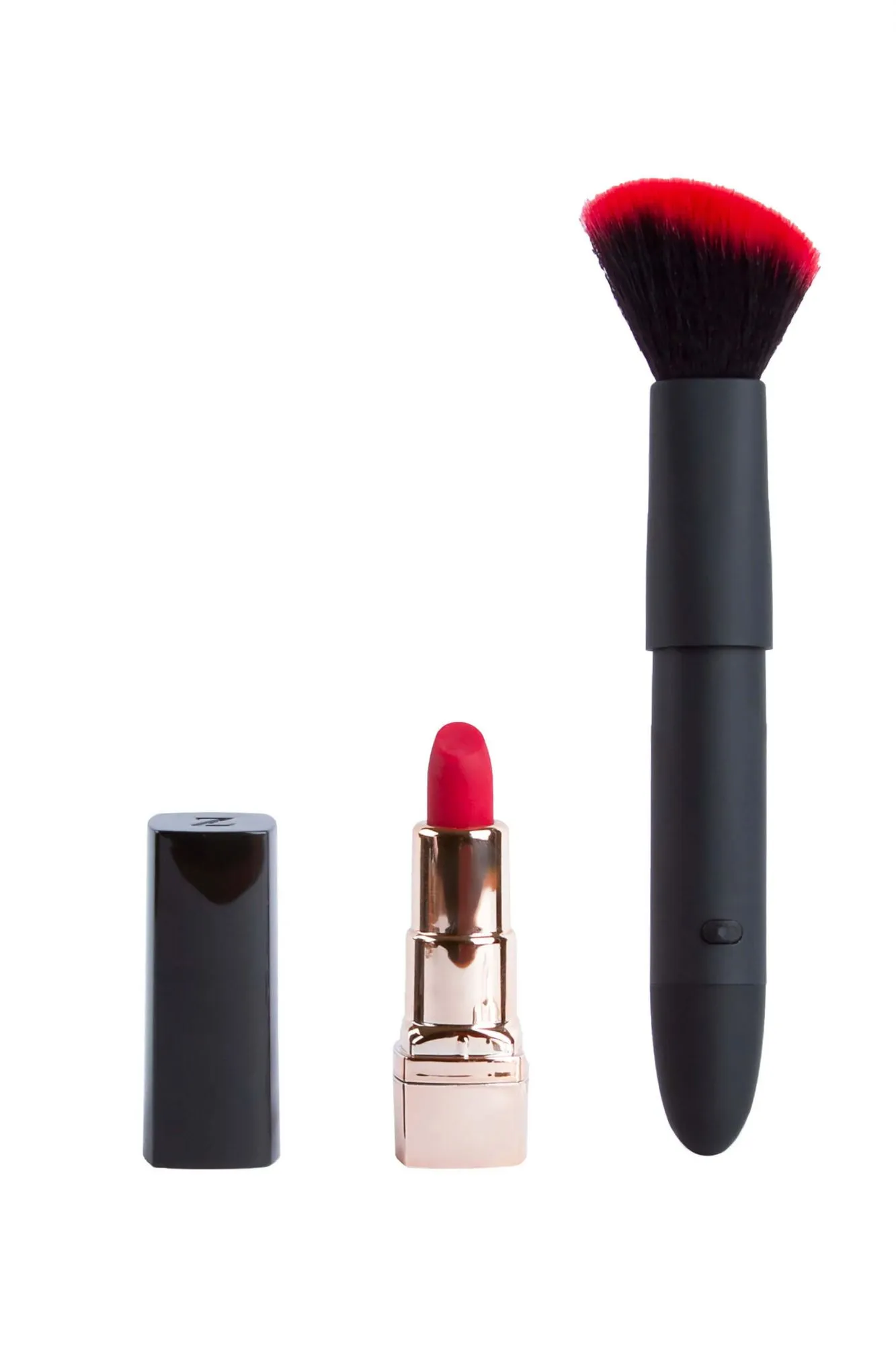 Вибратор-кисточка сделан из прочного пластика с бархатистым покрытием и искусственного меха красно-черного цвета. Корпус помады сделан из гладкого пластика, а кончик - из приятного на ощупь силикона. Режимы на обеих игрушках цикличны и контролируются одной кнопкой.