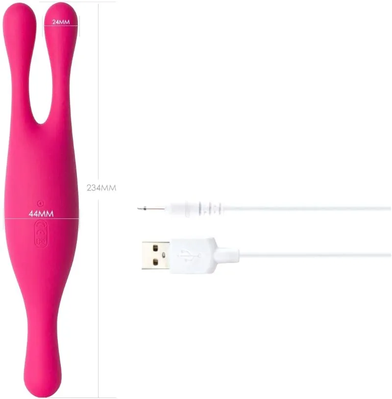 Вибромассажер Marin - это интересная игрушка с тремя моторами от бренда Svakom, использовать которую можно несколькими способами. Благодаря дизайну с двумя длинными ушками наверху, устройство подойдет для внутренней и внешней стимуляции эрогенных зон.