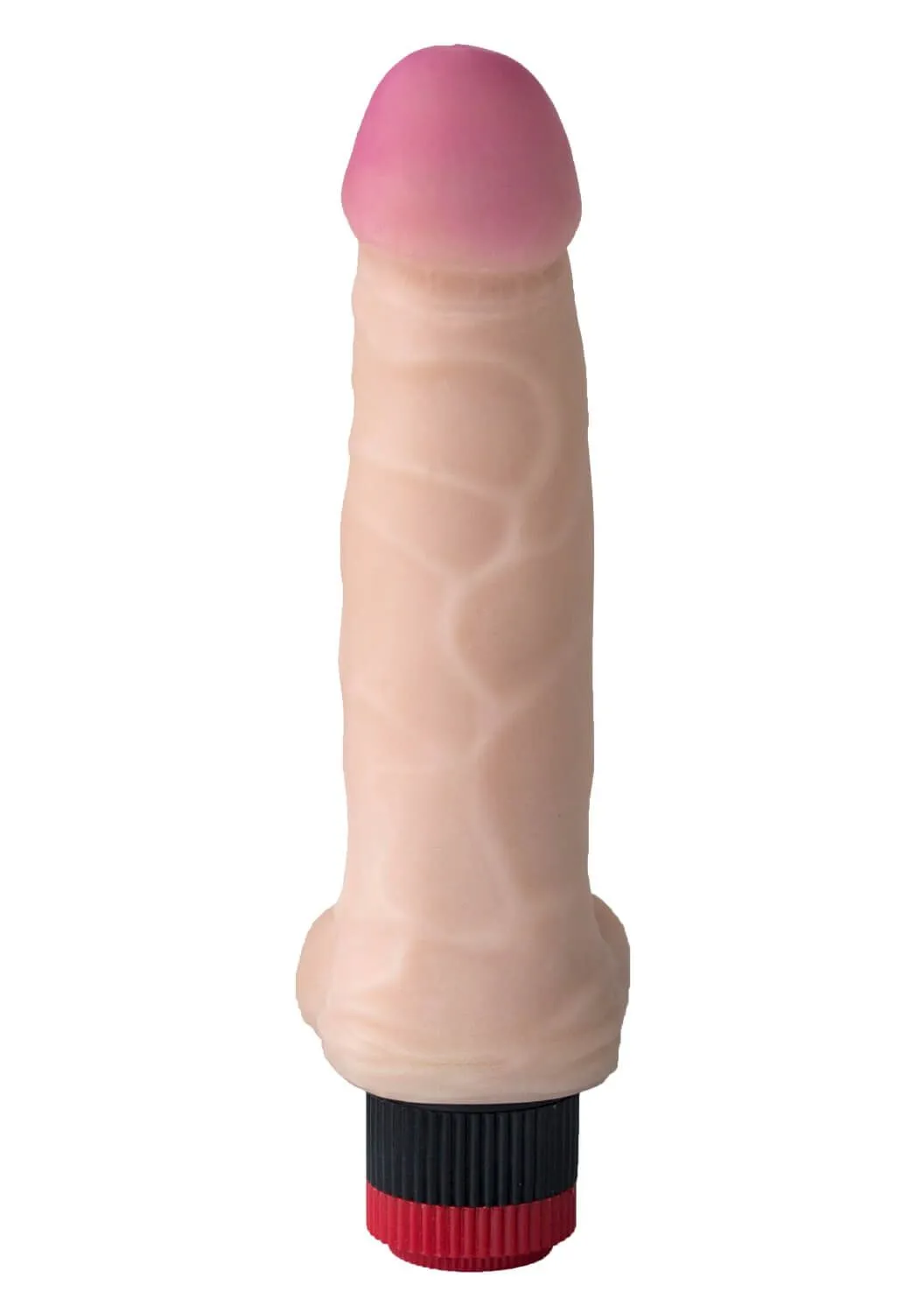 Вибратор сделан из очень нежного материала киберскин (TPR), по ощущениям напоминающим настоящую кожу. Сочетание такого материала и реалистичного дизайна позволят Вам представить, что Вы держите в руках настоящий эрегированный член. Также у вибратора есть небольшая мошонка, которую можно использовать для нежных ласк преддверия влагалища. По структуре он полужесткий и упругий, а в корпус дополнительно залит гелеобразный материал. Он обладает несколькими скоростями вибрации, переключить которые можно при помощи поворотного регулятора в основании.