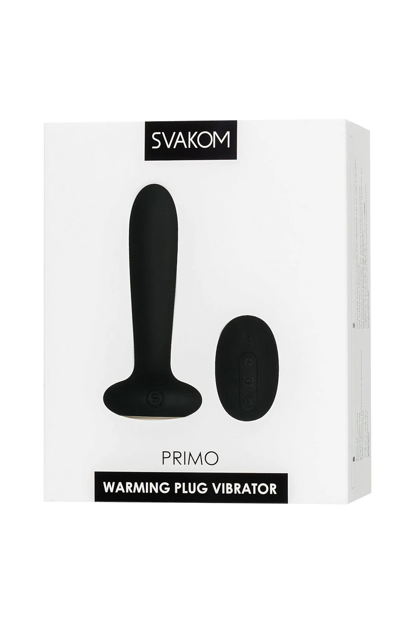 Primo Svakom — это интеллектуальная анальная вибропробка из силикона с нагревом и пультом дистанционного управления. Этот очень тихий, практически бесшумный анальный вибратор можно также использовать и для стимуляции зоны «G», если физиологически подходит. Но основная его функция — анальная стимуляция, для подготовки к анальному сексу либо для целенаправленной анальной стимуляции. Если нужно использовать анальную пробку в процессе вагинального секса для усиления ощущений обоих партнеров, то Svakom Primo прекрасно справится с этой ролью, а нагрев до 38 градусов по Цельсию и пульт ДУ раскрасят использование новыми оттенками удовольствия. Есть у Svakom Primo интересная деталь, он нагревается с того момента, как вы начинаете свою игру, его температура поднимается до 38 градусов по Цельсию и расслабляющее тепло начинает разноситься по вашему телу вместе с вибрацией. Только представьте, насколько возбуждающе приятна такая игра. Primo имеет 5 различных режимов, и 5 интенсивности в каждом режиме, поэтому у вас есть 5 х 5 = 25 вариаций режимов. Сделан из абсолютно безопасного, гипоаллергенного и нежного на ощупь силикона. Заряжается от аккумулятора в течение 2 часов, после чего способен непрерывно работать 1 час. Primo Svakom всегда готов доставить удовольствие. Водонепроницаемый, с ним можно использовать любые лубриканты на водной основе. Характеристики: Длина — 12 см; Диаметр — 2,6 см; Кол-во режимов вибрации — 5; Элементы питания — встроенный аккумулятор; Время зарядки 2 часа, время работы 1 час; Вес — 86 грамм.
