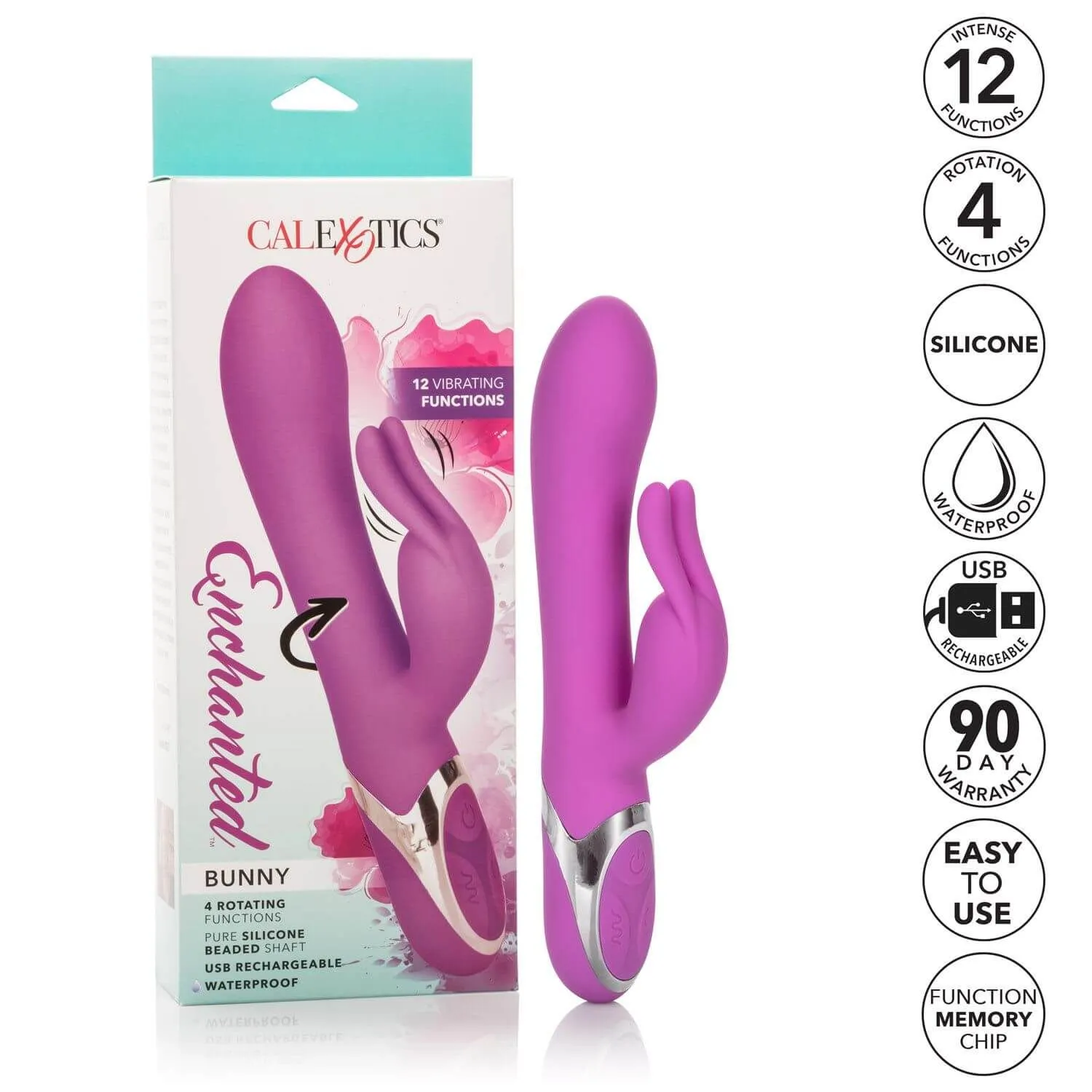 Вибратор Enchanted Bunny подарит Вам настоящее удовольствие благодаря его многофункциональности, особой форме и качественному материалу. Вместе с этим вибратором у Вас будет множество возможностей испытать самые различные ощущения, ведь он обладает 12 режимами вибрации и 4 режимами ротации шариков внутри ствола. Головка игрушки под небольшим углом будет воздействовать на точку G, а небольшой отросток в виде милого зайчика - стимулировать клитор.
