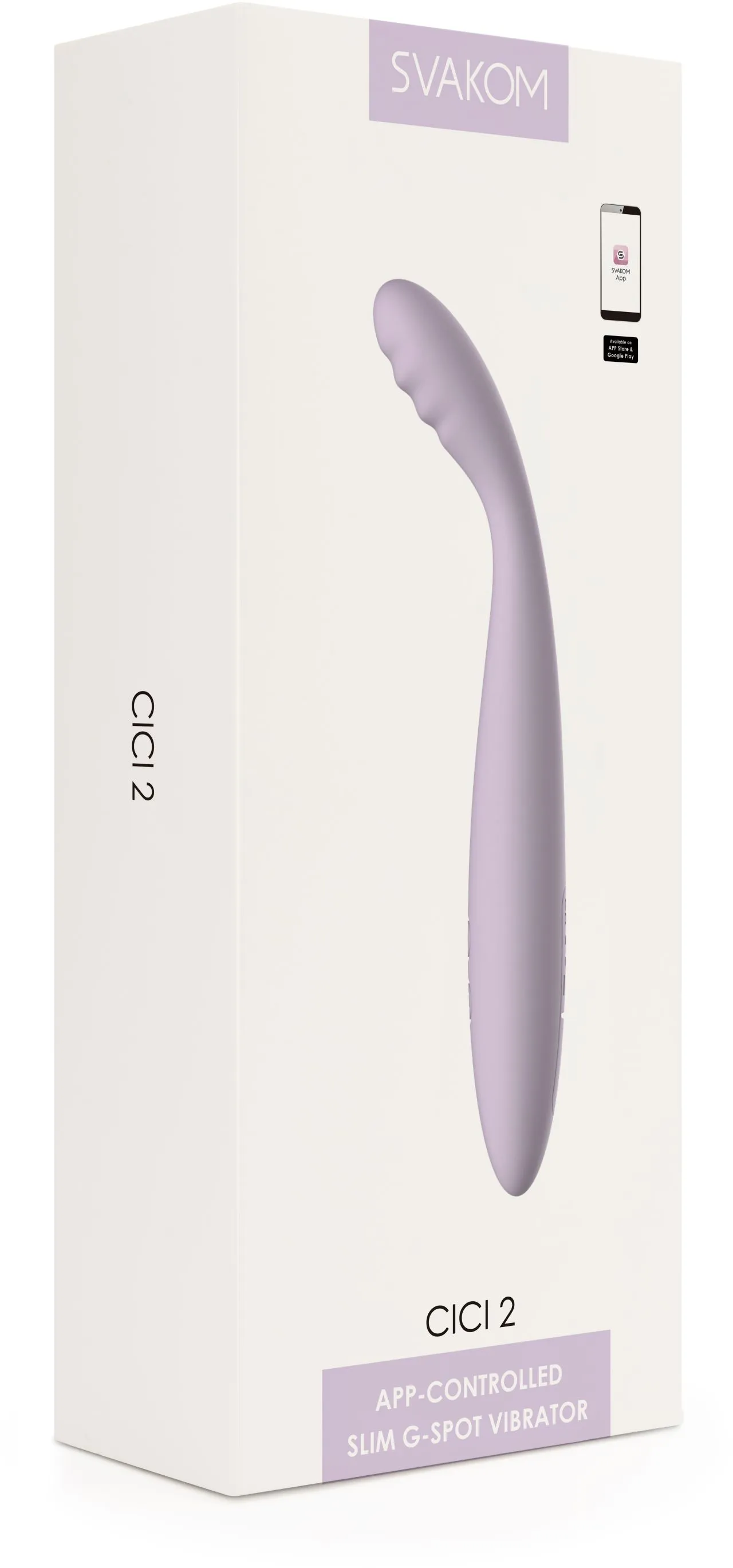 Встречайте Cici 2. Тонкий вибратор для зоны G, управляемый через приложение, от SVAKOM — это обновленная модель бестселлера Cici. Заставьте свою зону G сиять с помощью ультратонкого и сверхпрочного Cici 2.