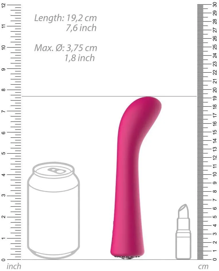 Вибратор Discretion G-spot Glimmer от бренда Shots Media обладает загнутой головкой, созданной специально для направленной стимуляции точки G. Он гибкий, поэтому во время интимного массажа будет подстраиваться под контуры тела.
